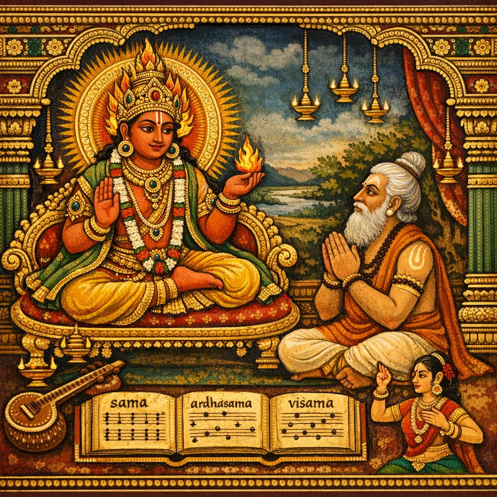 భగవాన్ అగ్ని సాహిత్యశాస్త్రాన్ని క్రమబద్ధంగా వివరిస్తాడు. వాఙ్మయానికి మూలమైన ధ్వని, వర్ణం, పదం, వాక్యం అనే నిర్మాణ ఘటకాలను నిర్వచించి, శాస్త్రం–ఇతిహాసం మధ్య భేదాన్ని చెబుతాడు: ఒకటిలో పదరచన ప్రాధాన్యం, మరొకటిలో స్థిరార్థం ప్రాధాన్యం. కవిత్వాన్ని అభిధా (ప్రత్యక్షార్థం) ప్రధానంగా నిరూపిస్తూ, నిజమైన విద్య, కవిశక్తి, వివేకం దుర్లభమని సూచిస్తాడు. విభక్తులు, వాక్యసీమ నిర్ణయం వంటి భాషాతత్త్వాల తరువాత, కావ్యం అలంకారయుక్తం, గుణసంపన్నం, దోషరహితం కావాలని; దానికి వేదం మరియు లోకప్రయోగం రెండూ ప్రమాణాలని చెబుతాడు. తరువాత భాషా స్థాయి, రూపభేదాల ప్రకారం (గద్య, పద్య, మిశ్ర) రచనావిభాగం చేసి, గద్యశైలులు మరియు ఐదు గద్యకావ్య జాతులు—ఆఖ్యాయిక, కథ, ఖండకథ, పరిఖథ, కథానిక—వివరిస్తాడు. చివరలో ఛందస్సులు, ప్రధాన పద్యరూపాలు చెప్పి మహాకావ్యలక్షణాన్ని స్థాపిస్తాడు: రీతి, రసాలతో సమృద్ధమైన మహాకావ్యం; పదచాతుర్యం ఎంత ఉన్నా రసమే కవిత్వ ప్రాణమని, శిల్పం–సౌందర్య-ఆధ్యాత్మిక ప్రయోజనం సమన్వయమని చూపుతాడు।