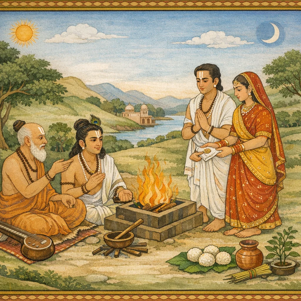 సనక–నారద ఉపదేశసందర్భంలో బ్రహ్మచర్యం పూర్తైన తరువాత గురుసేవ, అనుమతి, అగ్నిప్రతిష్ఠ, దక్షిణా ఇచ్చి వివాహం ద్వారా గృహస్థాశ్రమ ప్రవేశం వివరించబడింది. యోగ్య వర–వధూ ఎంపికలో గుణాలు, సగోత్రాది బంధ పరిమితులు, అర్హతలేని లక్షణాలు చెప్పబడతాయి. ఎనిమిది వివాహభేదాలు వివరించి కొన్ని నిందనీయం, కొన్ని స్థాయివారీగా అనుమేయమని సూచించబడింది. బాహ్య–ఆంతర ఆచారం—వస్త్రధారణ, శౌచం, వాక్సంయమం, గురుసత్కారం, నిందా-దుర్సంగత్యాగం—విధించబడింది; అపవిత్రస్పర్శల తరువాత శుద్ధిస్నానాలు, శుభాశుభ సూచకాలు కూడా పేర్కొనబడాయి. సంధ్యావందనం, నిత్య-నైమిత్తిక యజ్ఞాలు, అలాగే శ్రాద్ధకాల విస్తారం—గ్రహణాలు, సంక్రాంతులు, ప్రేతపక్షం, మన్వాది, అష్టకలు, తీర్థప్రసంగాలు—నిర్దేశించబడింది. ముగింపులో వైష్ణవ లక్షణం ప్రధానంగా: ఊర్ధ్వపుండ్రం లేని కర్మ ఫలహీనమని, శ్రాద్ధంలో తులసి/తిలక నిషేధం నిరాధార ఆచారమని, విష్ణుకృపే ధర్మసిద్ధికి ఆధారమని చెప్పబడింది.