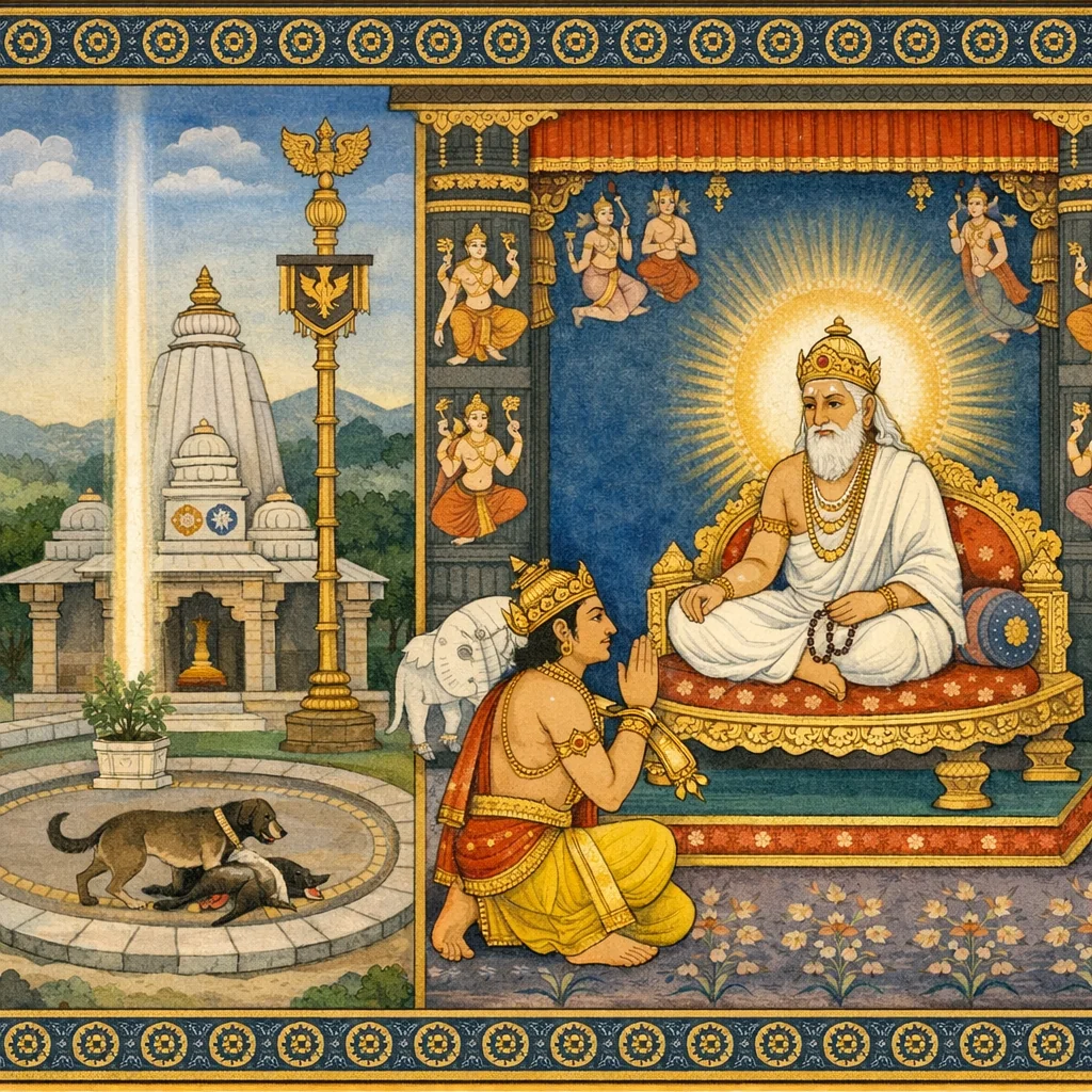నీ నగరంలో ‘సుధర్మ’ అనే పేరుతో ప్రసిద్ధుడైన ఒక వ్యక్తి ఉన్నాడు; అతడు బ్రహ్మలోకమునుండి ఇక్కడికి వచ్చి దివ్యభోగాలను అనుభవిస్తున్నాడు.