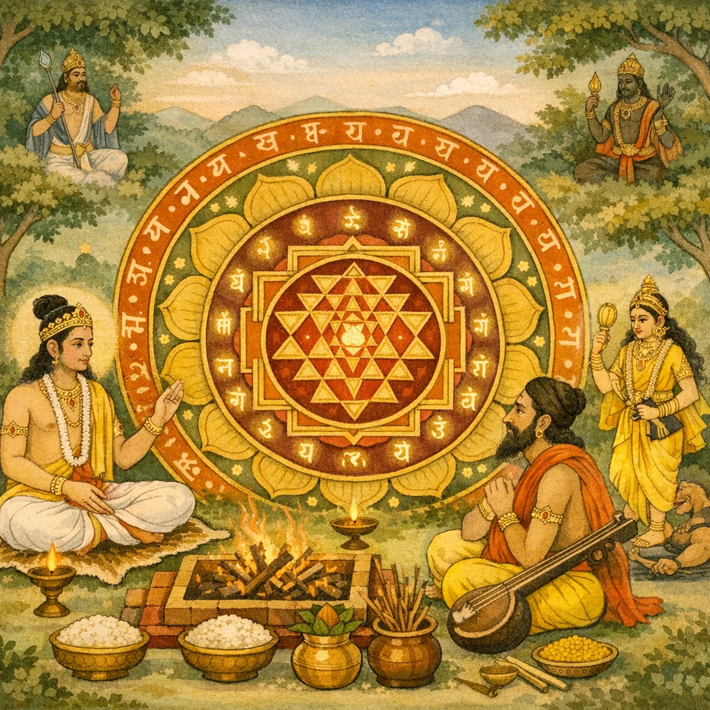 Nyāsa is treated as the operative bridge between mantra and embodied worship: by installing bījas, epithets, and śaktis onto specific body loci and diagrammatic loci, the sādhaka aligns speech-power (vāk), desire-power (kāma), and śakti into a ritually “activated” circuit that the text says yields siddhi and stability of results.