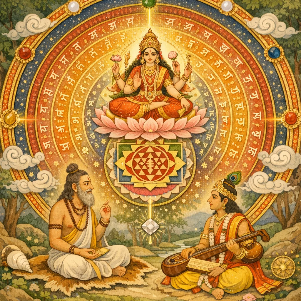 In Śākta-Tantric pedagogy, mantra and Devī-upāsanā are authorized through lineage (sampradāya). The guru-dhyāna/stava establishes the channel of śakti and right understanding (adhikāra), portraying Śiva-as-Guru as the revealer of knowledge; only then does the sādhaka proceed to Devī contemplation and enclosure-based worship.