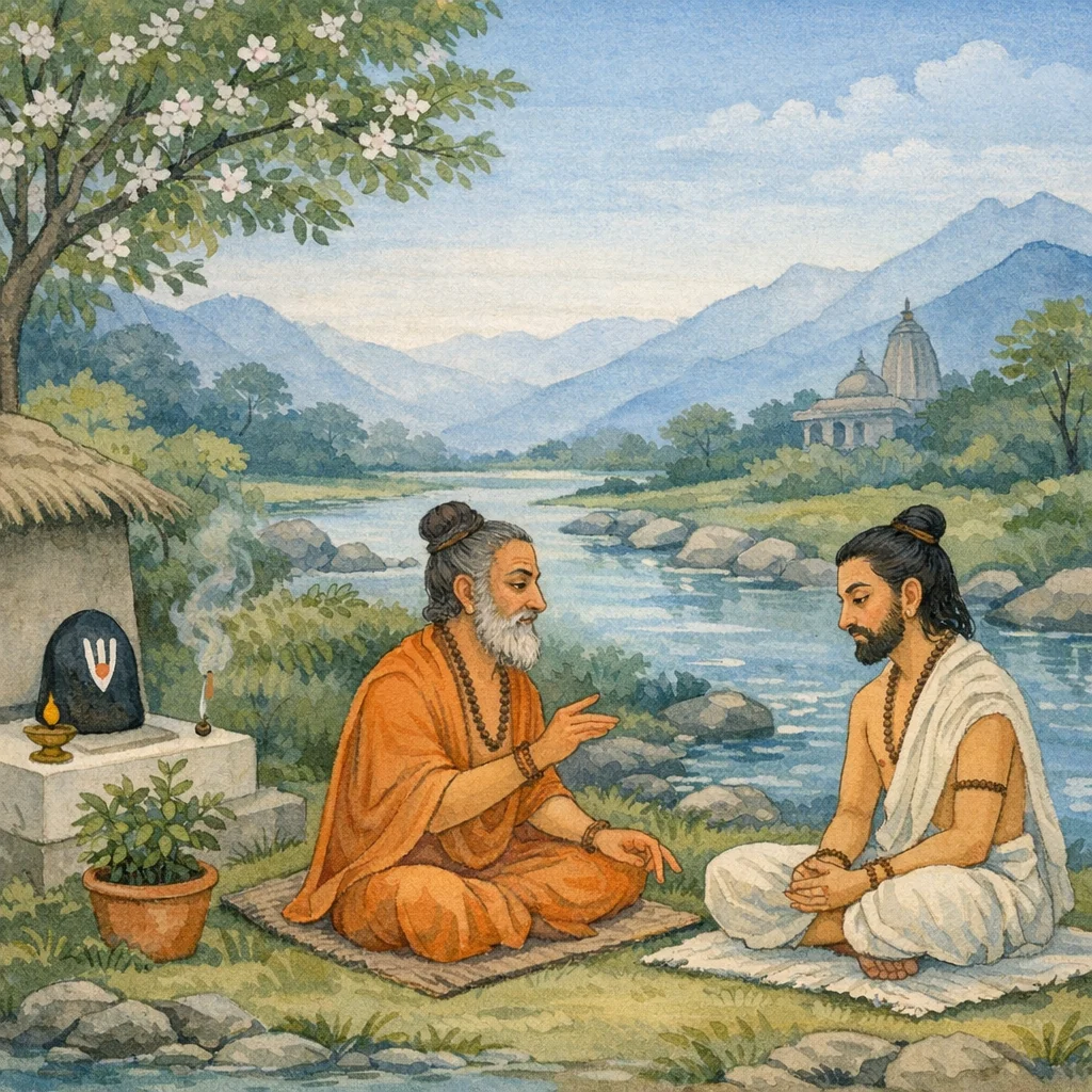 జన్మించిన వెంటనే అతడు సమస్త శాస్త్రార్థాలలో పారంగతుడయ్యాడు. భక్తితో తల్లిని ఇలా అడిగాడు—“అమ్మా, నేను ఏమి చేయాలి?”
