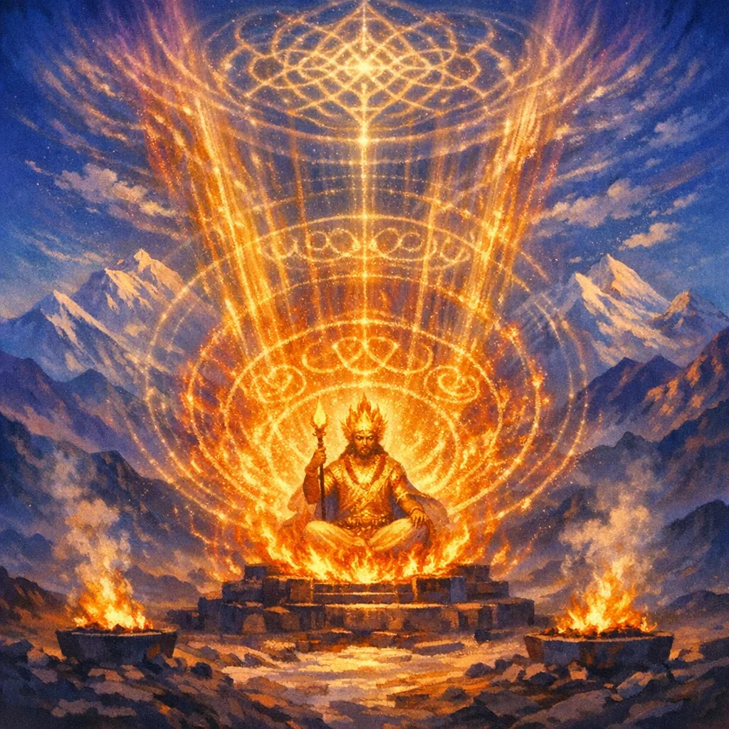 Agni as Jātavedas—ritual guide and luminous power who secures faultless sacrifice and protection in the sadas