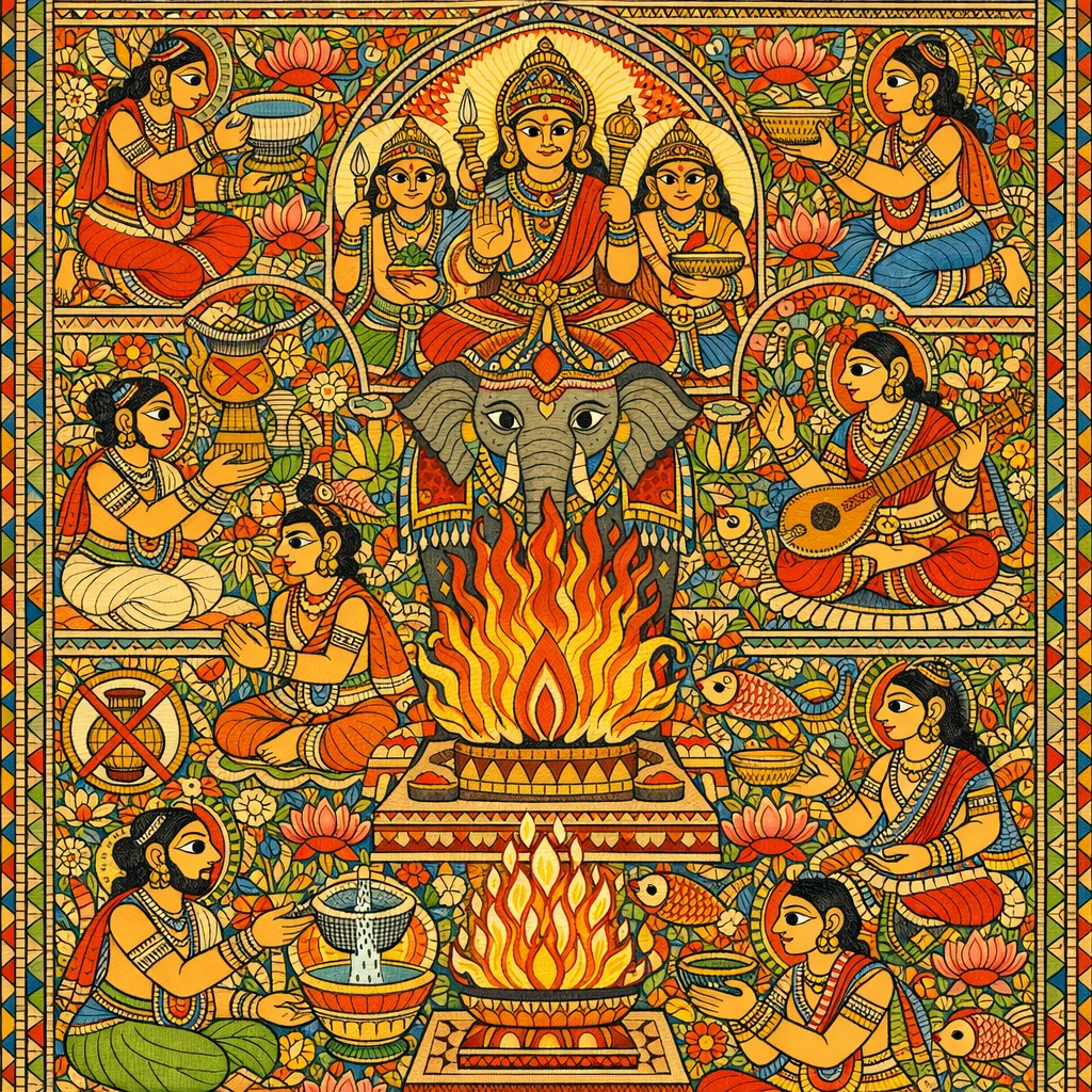 ఆతిథ్య (Atithya) యొక్క రూపం ‘మాసర’ (మాష-ప్రసాదం/మాష-తయారీ); మహావీరుని (రూపం)ను ‘నగ్నహు’ అని పిలుస్తారు. ఇదే ఉపసద్ (Upasad)ల రూపం—మూడు రాత్రులు, (యథా) సురా-ఆసుత (మద్యం కాచినది/ఆసవించినది) వలె.