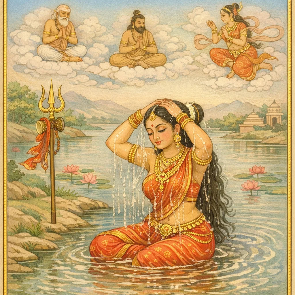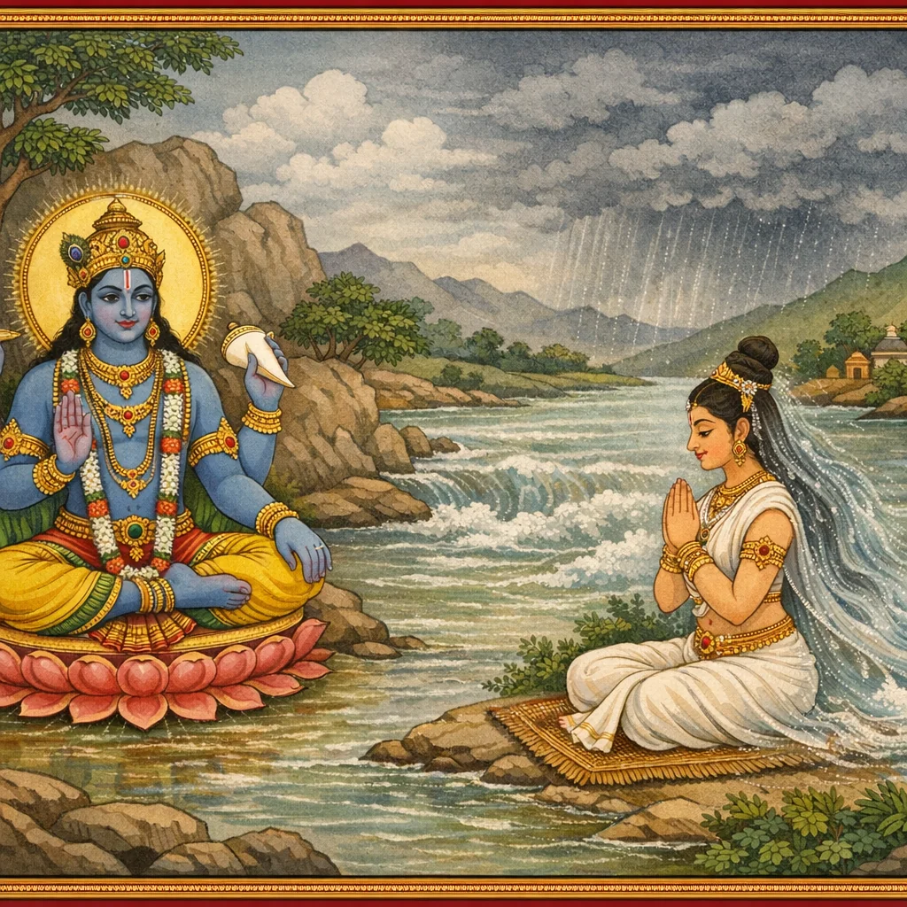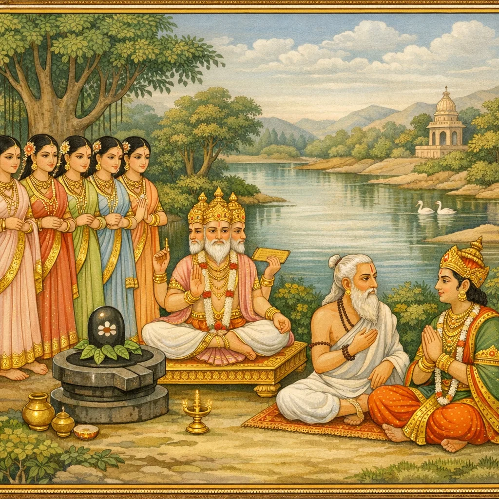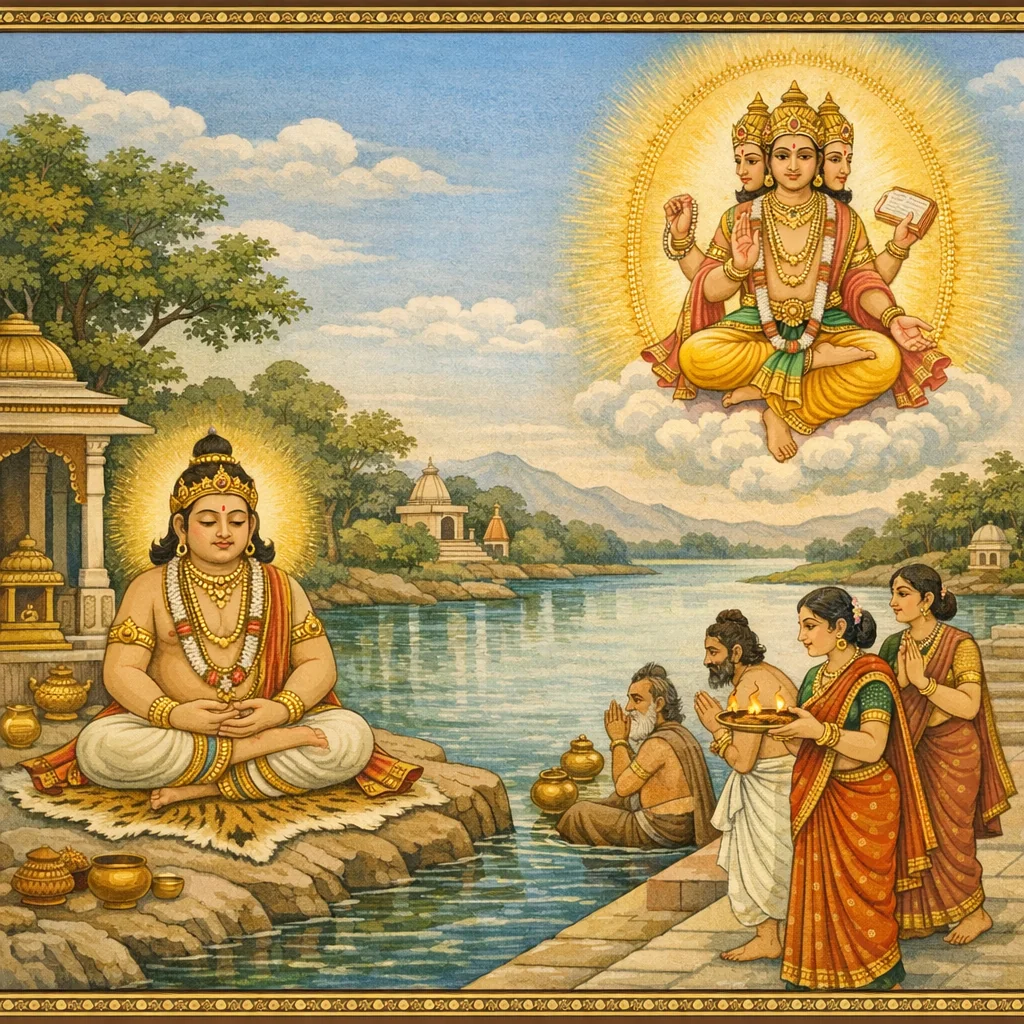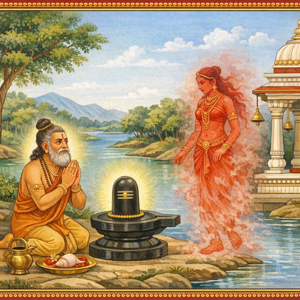 नर्मदाया दिव्यदर्शनं कल्पान्तरस्थैर्यं च (Narmadā’s Divine Epiphany and Her Continuity Across Kalpas)