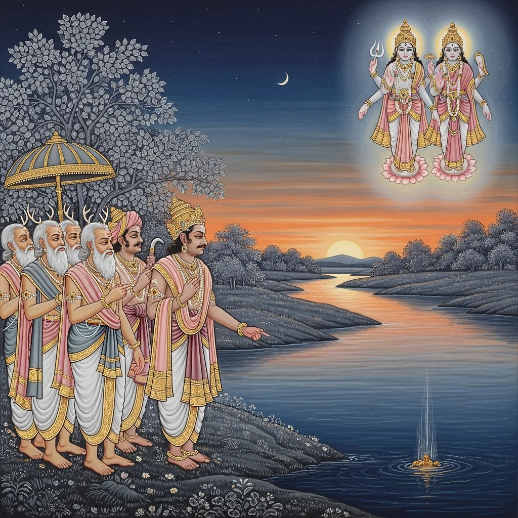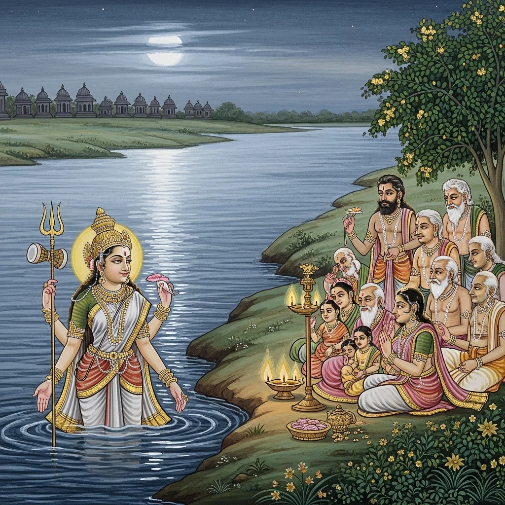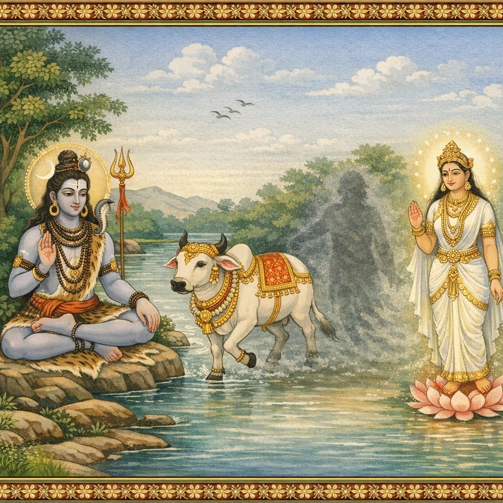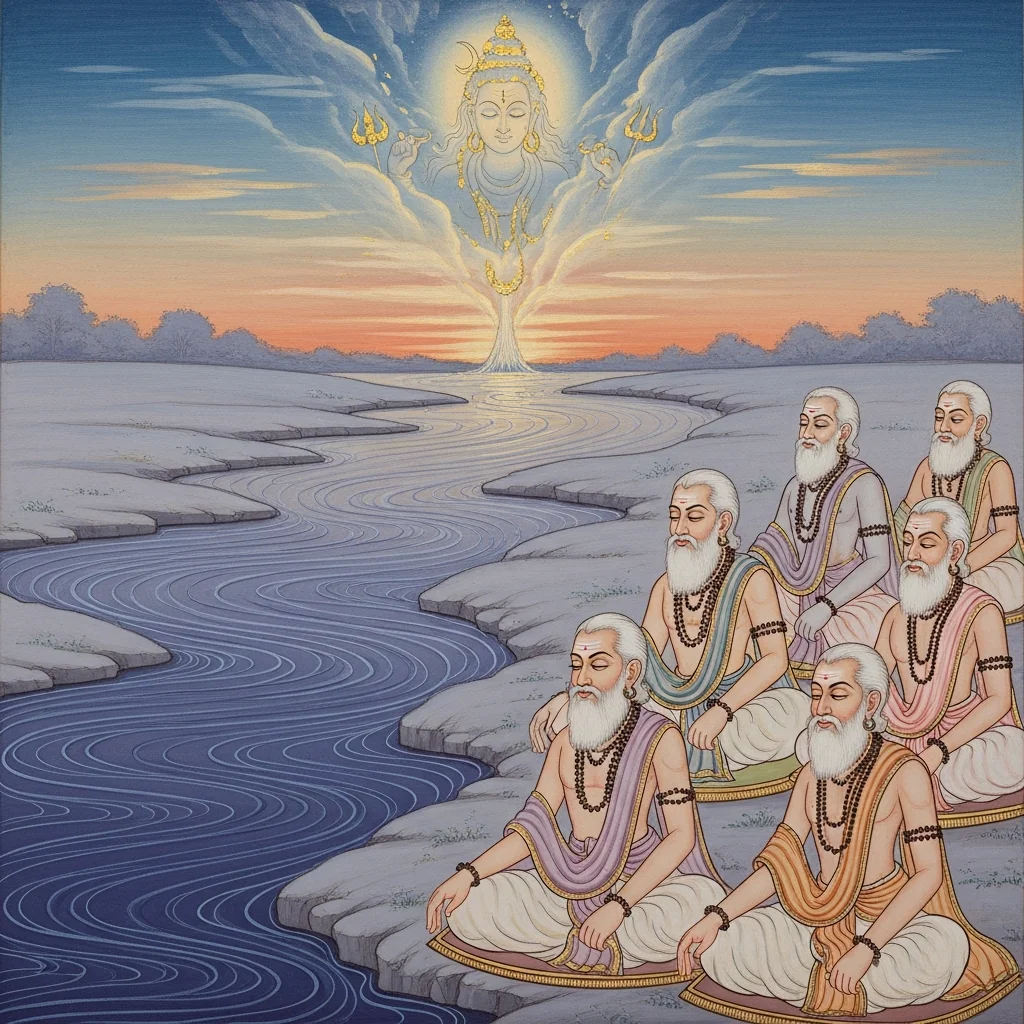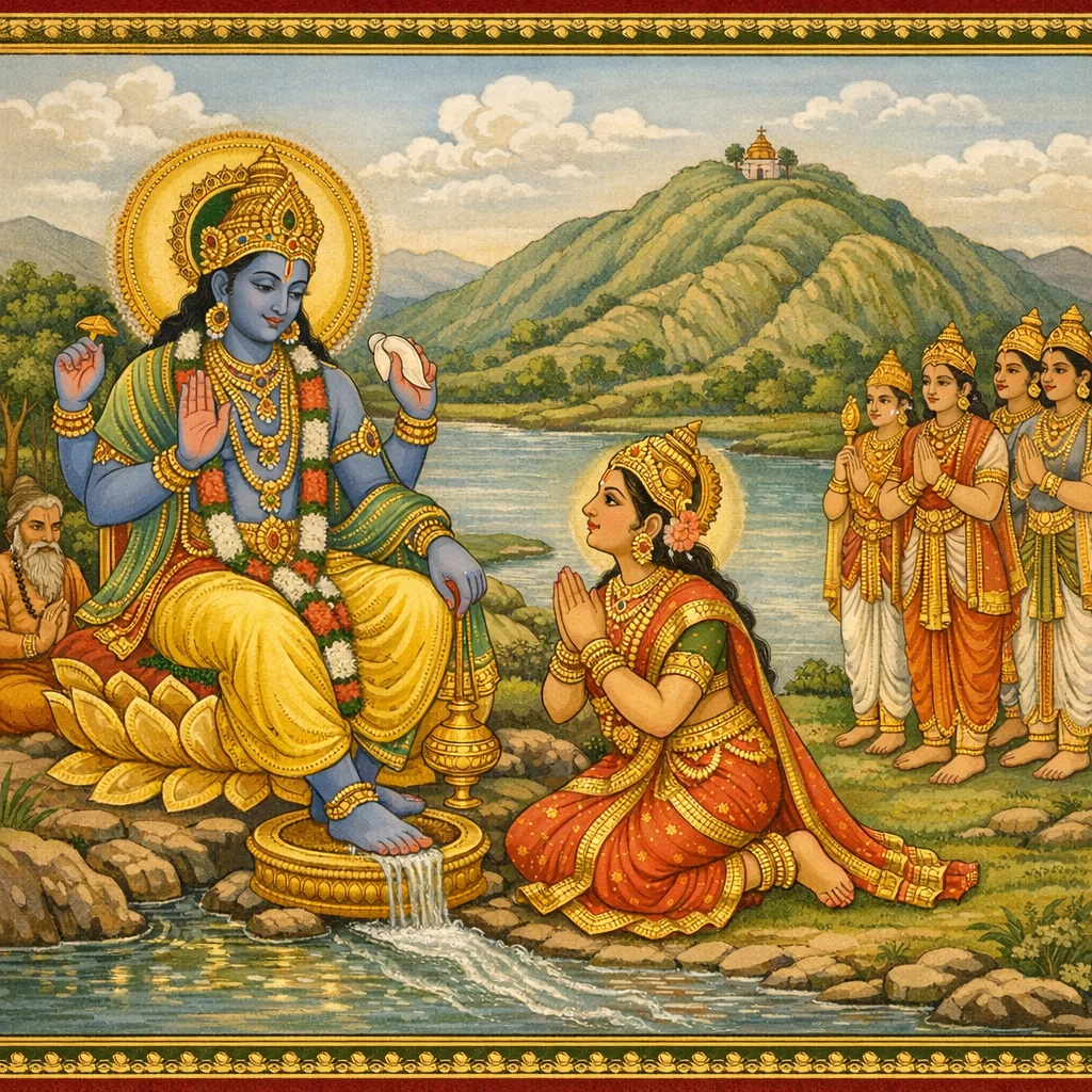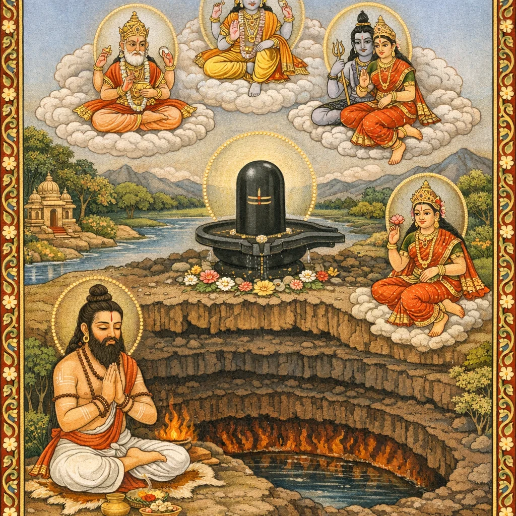 नर्मदाया दिव्यदर्शनं कल्पान्तरस्थैर्यं च (Narmadā’s Divine Epiphany and Her Continuity Across Kalpas)