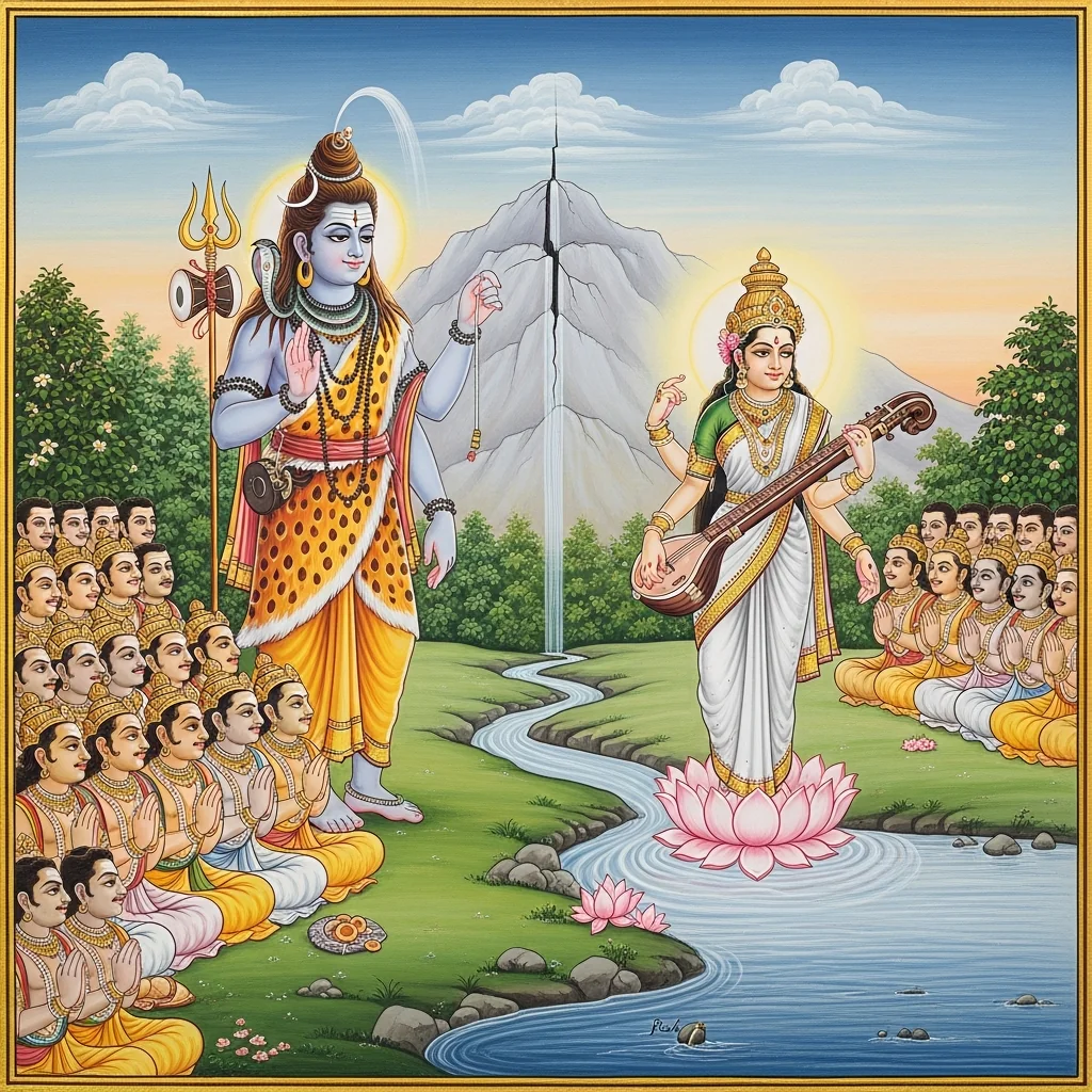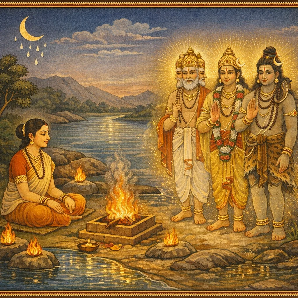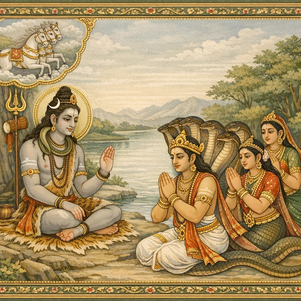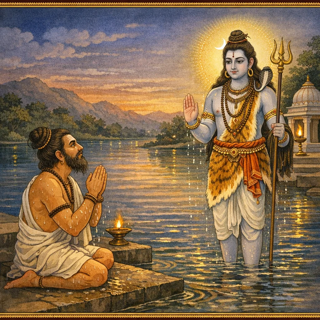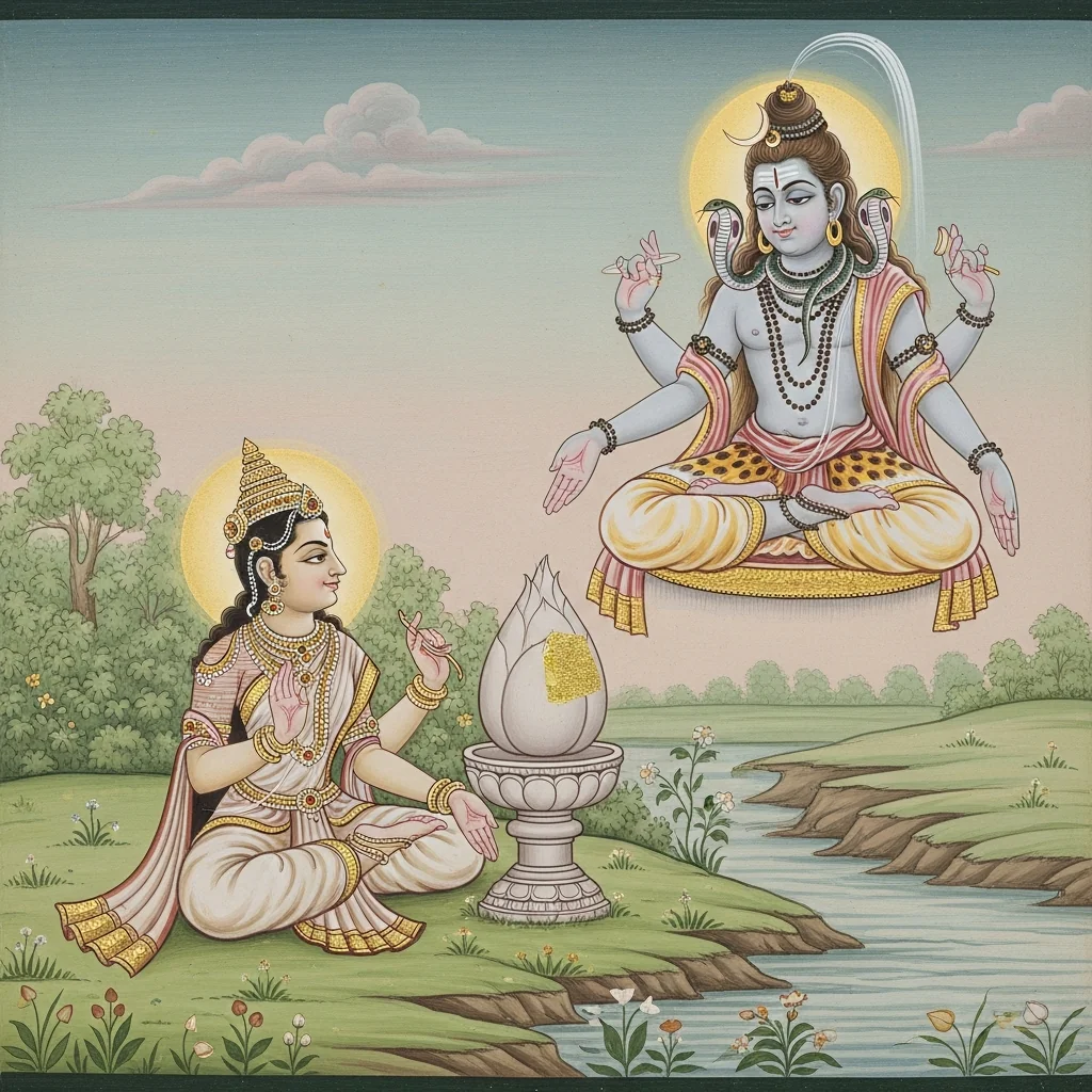 नर्मदाया दिव्यदर्शनं कल्पान्तरस्थैर्यं च (Narmadā’s Divine Epiphany and Her Continuity Across Kalpas)