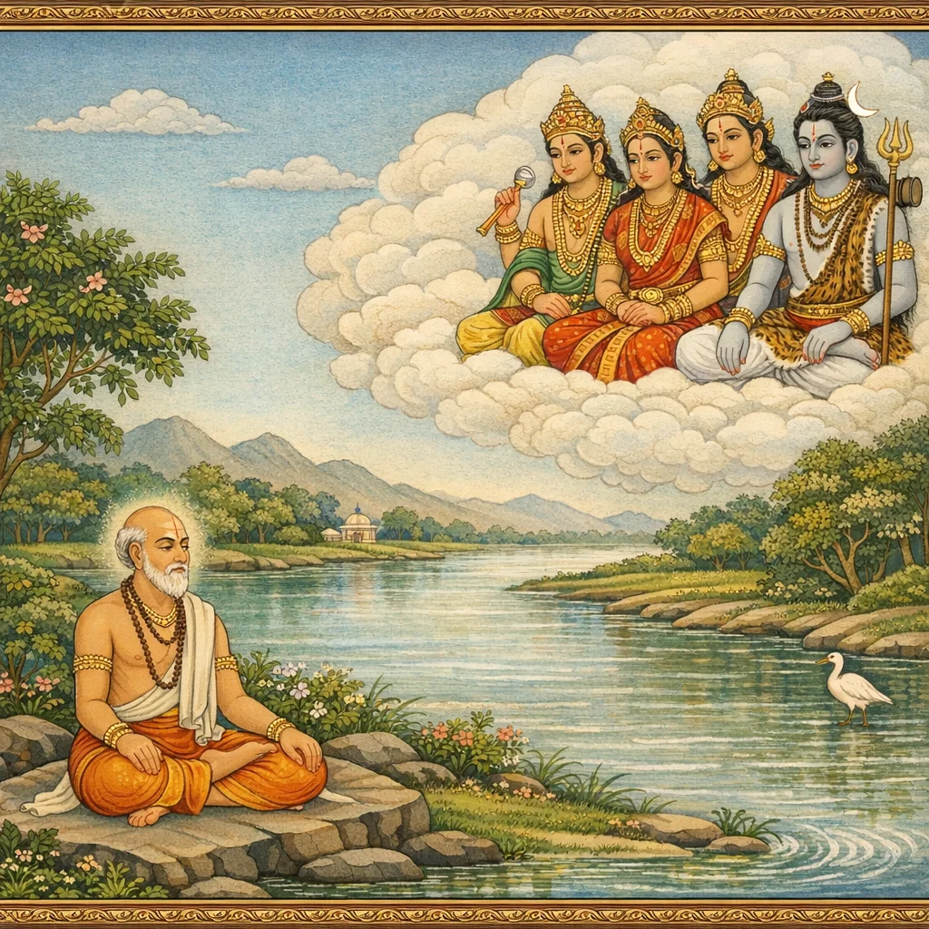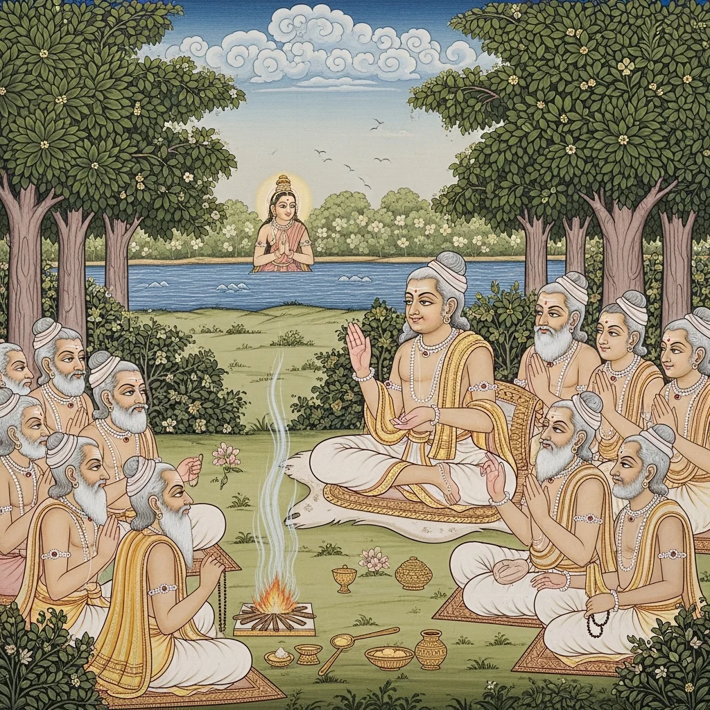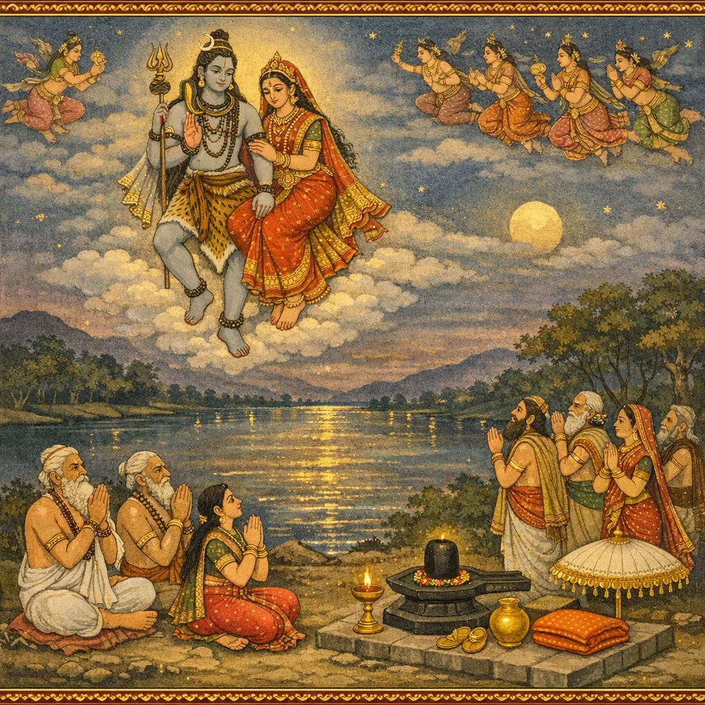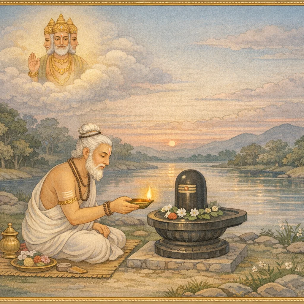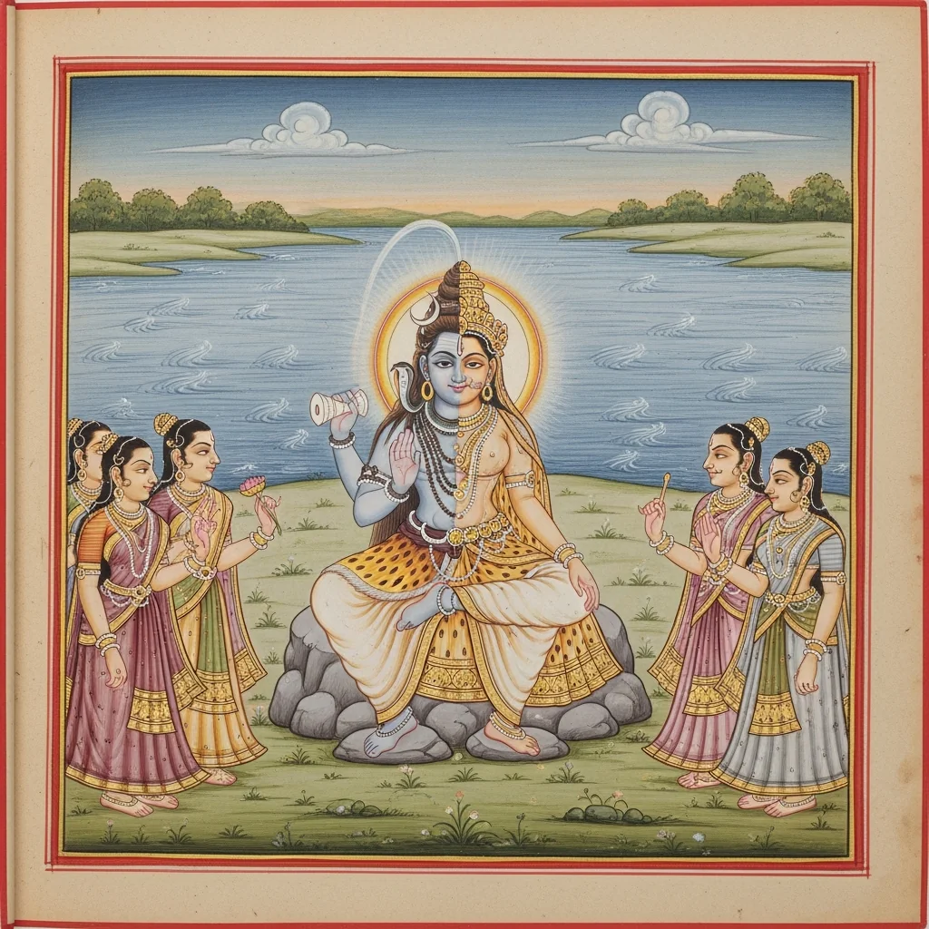 नर्मदाया दिव्यदर्शनं कल्पान्तरस्थैर्यं च (Narmadā’s Divine Epiphany and Her Continuity Across Kalpas)