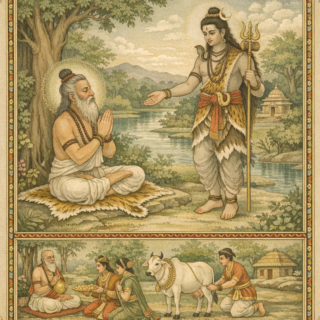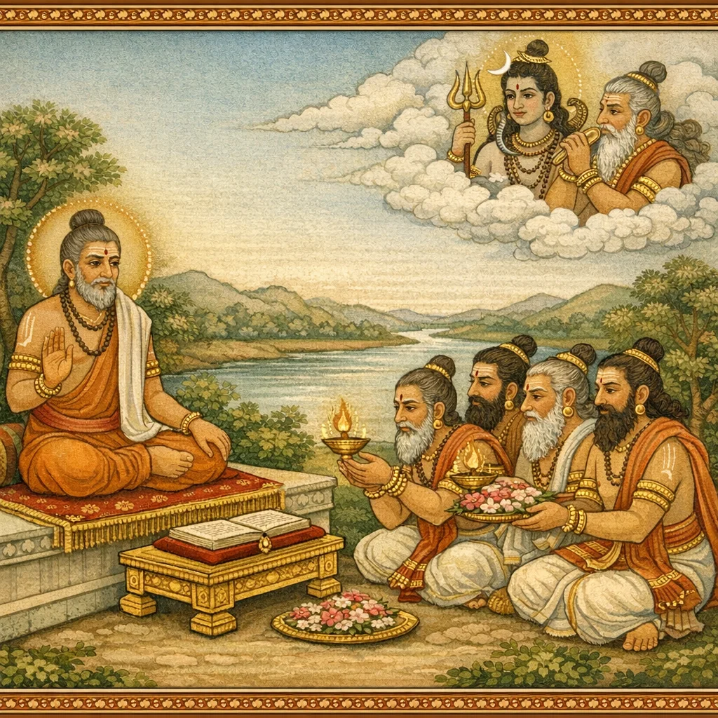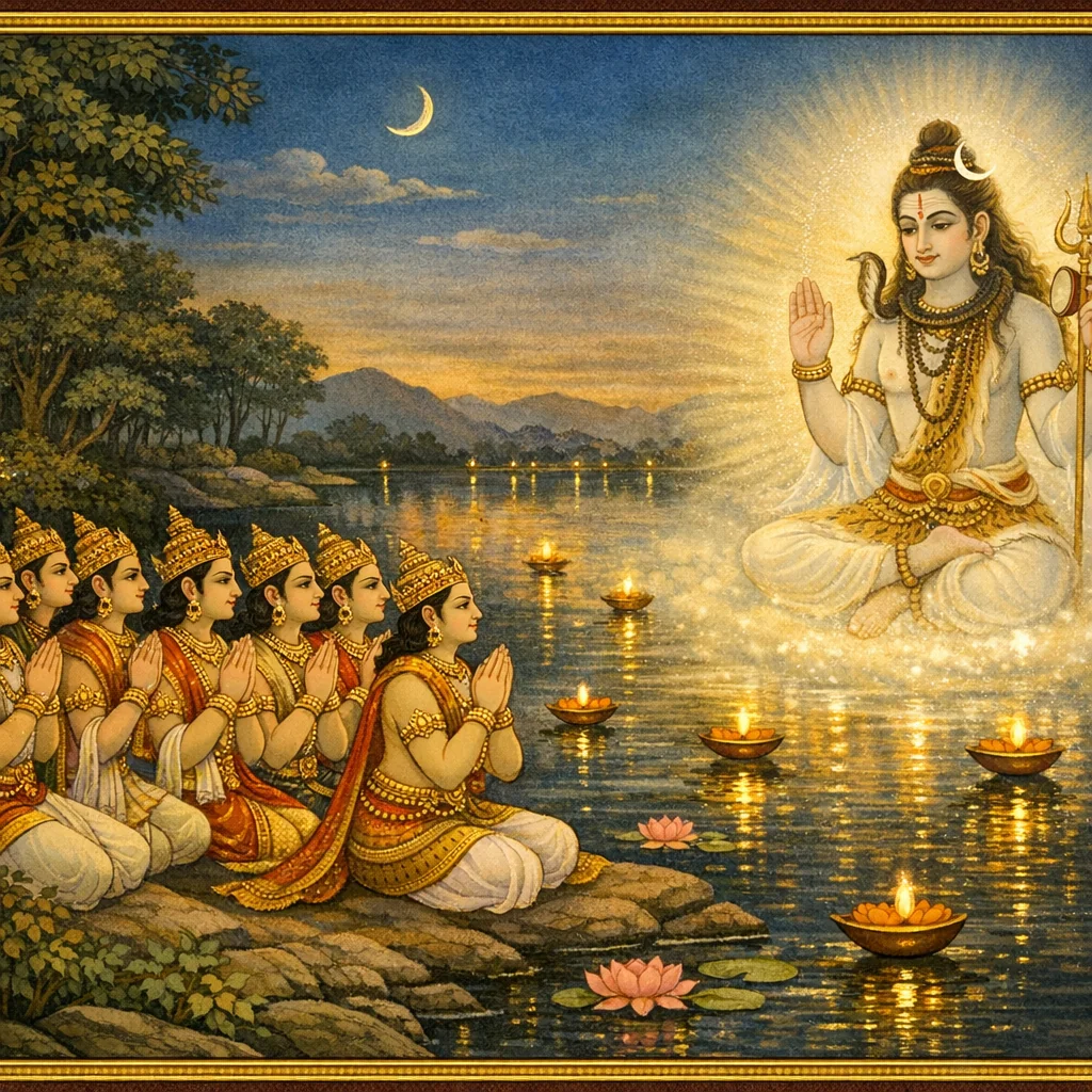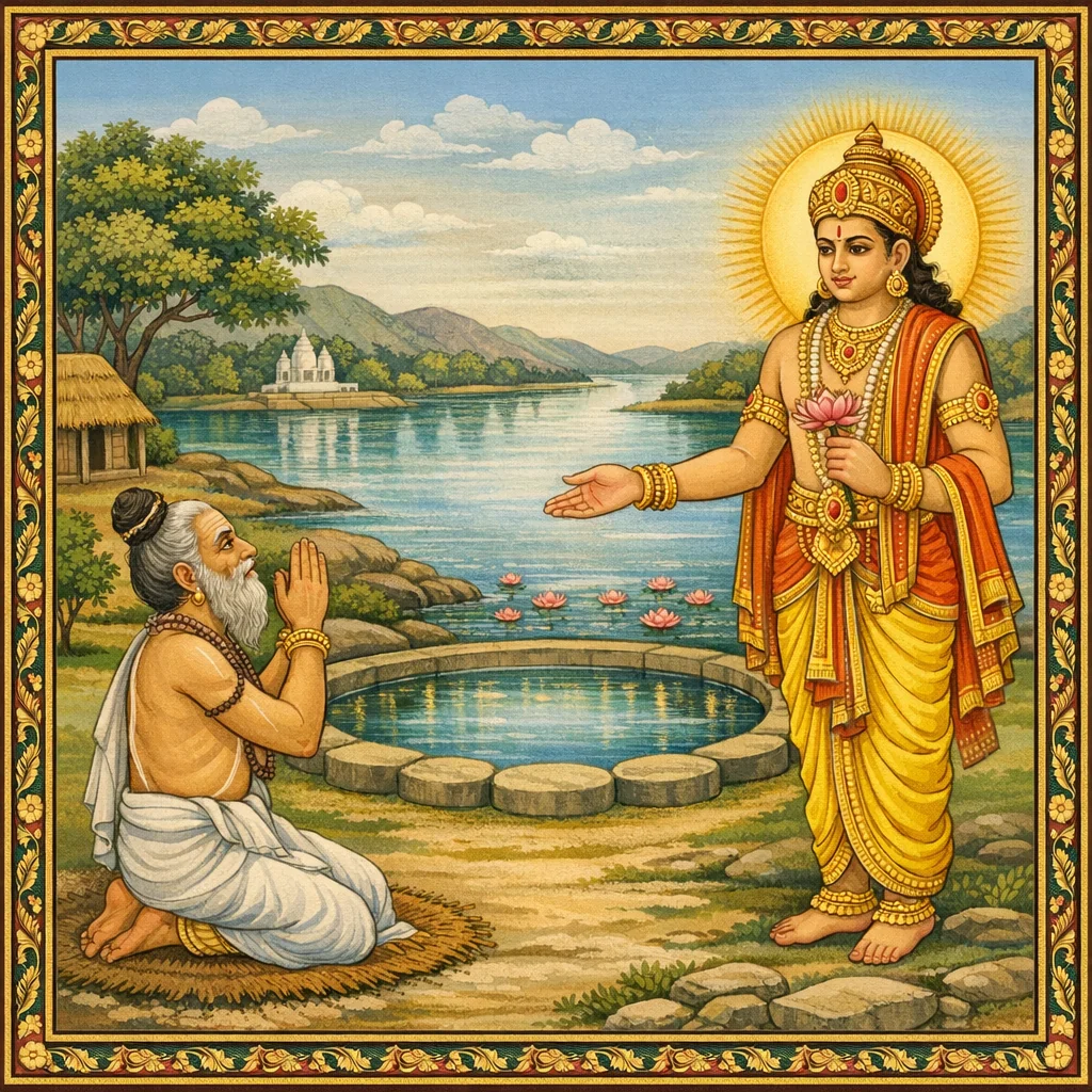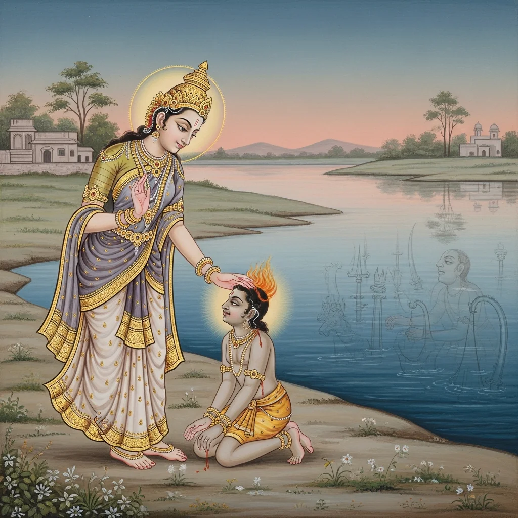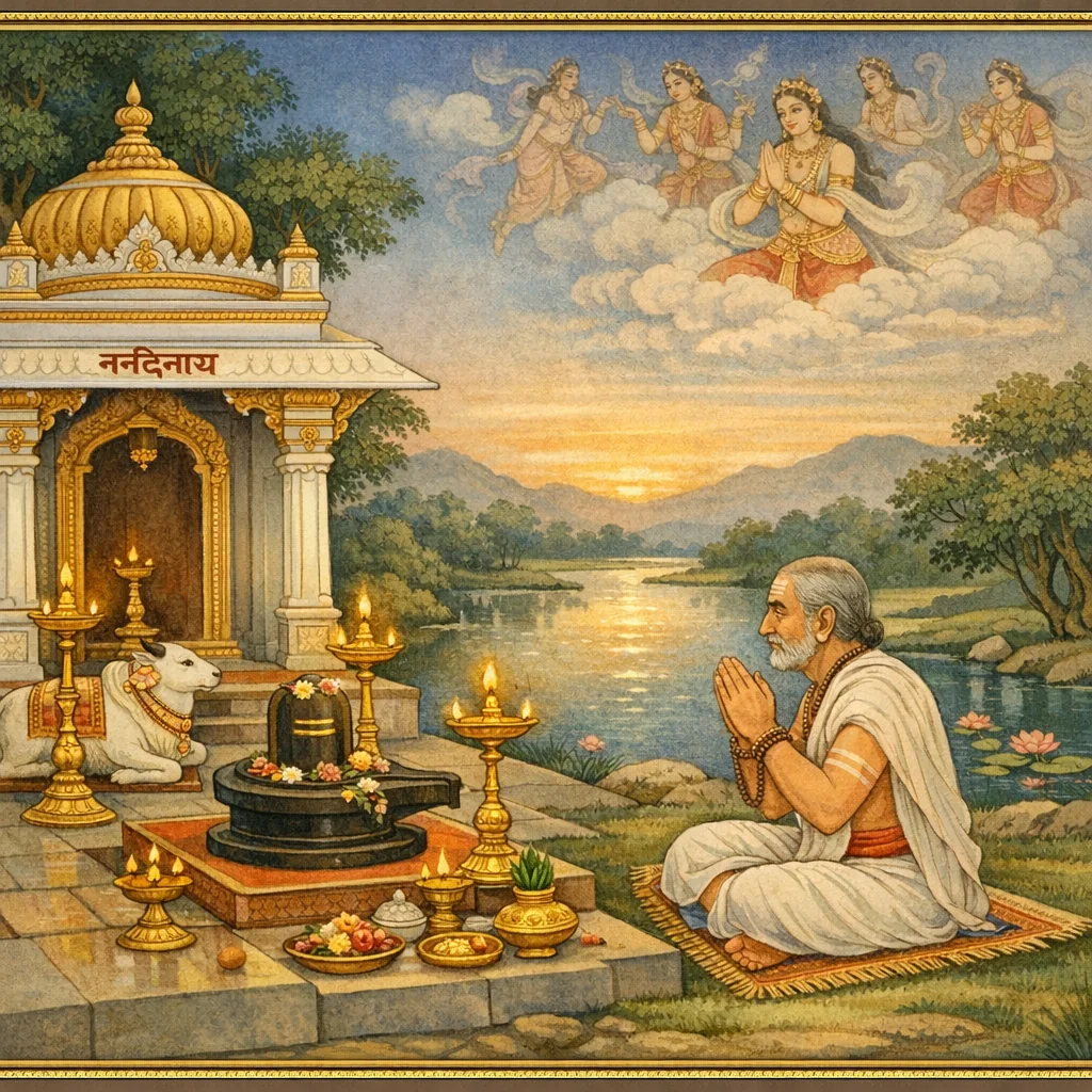 नर्मदाया दिव्यदर्शनं कल्पान्तरस्थैर्यं च (Narmadā’s Divine Epiphany and Her Continuity Across Kalpas)