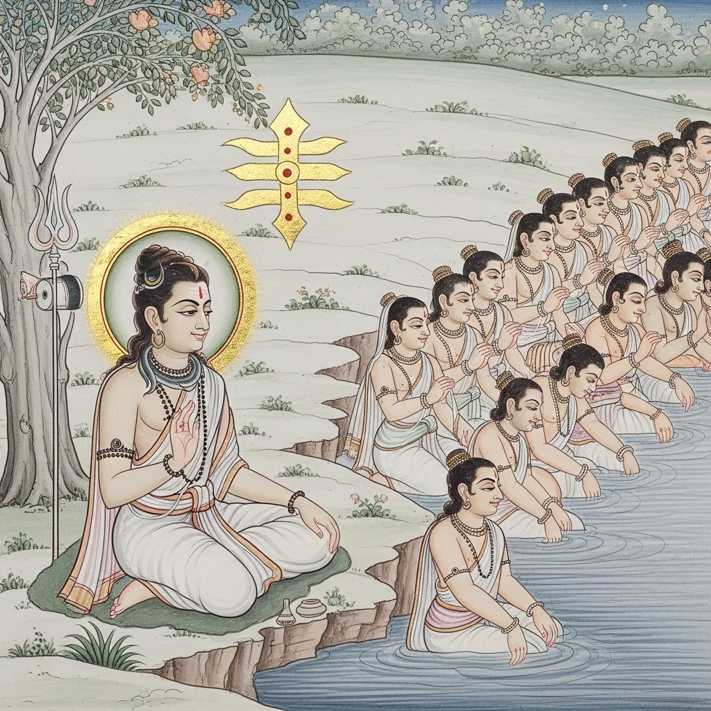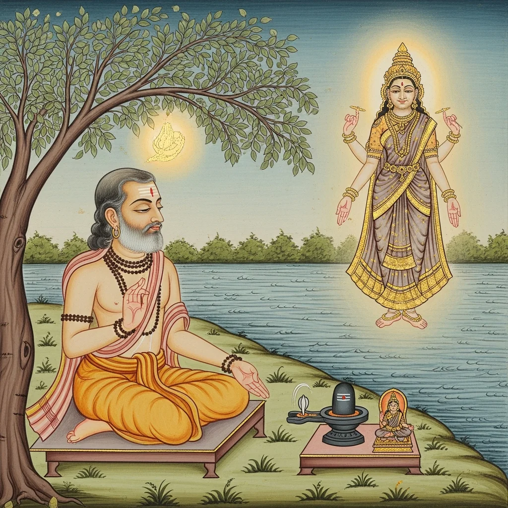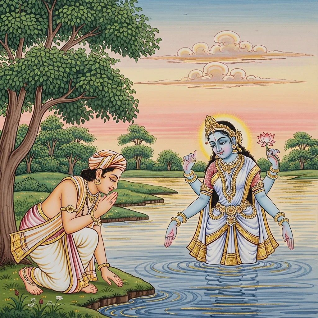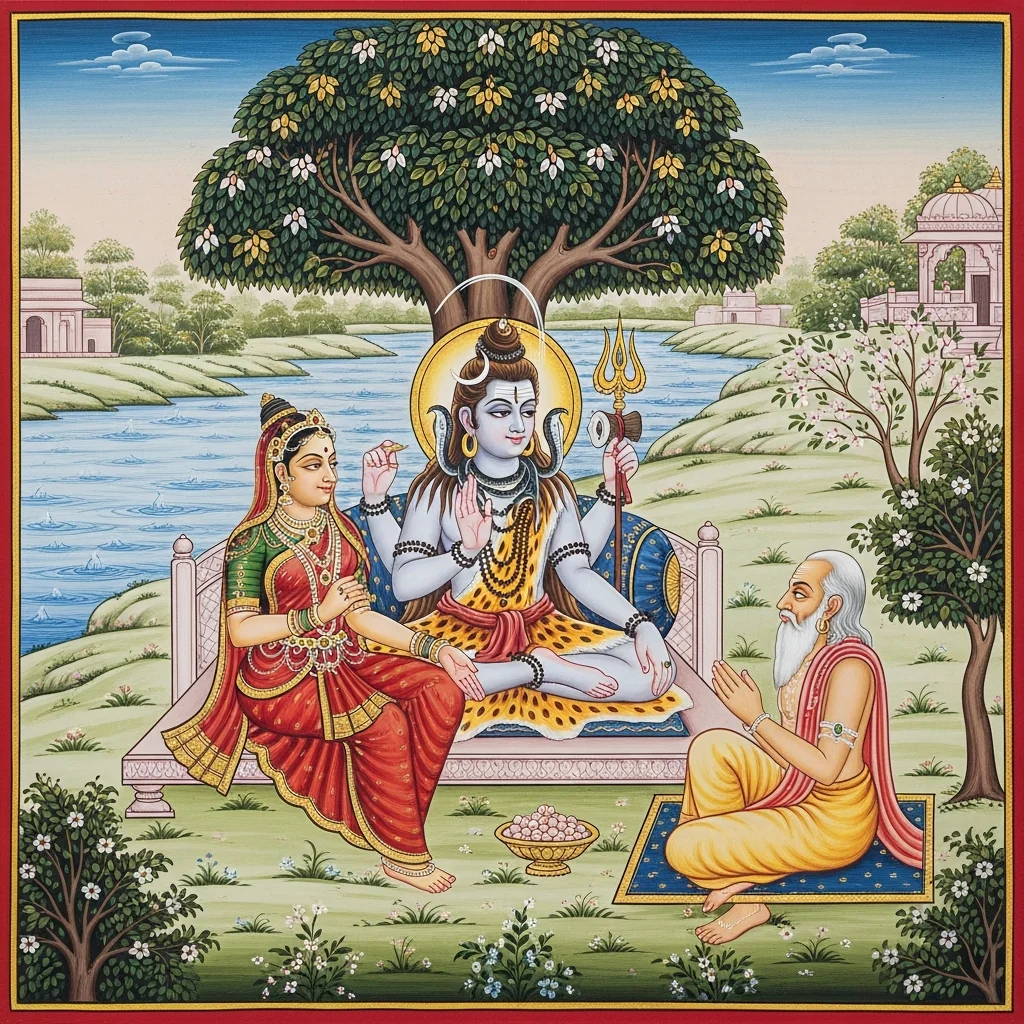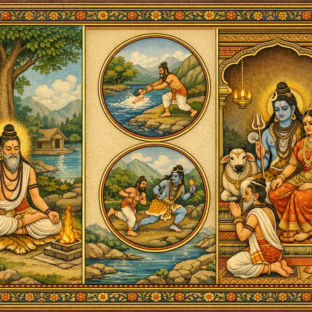नर्मदाया दिव्यदर्शनं कल्पान्तरस्थैर्यं च (Narmadā’s Divine Epiphany and Her Continuity Across Kalpas)