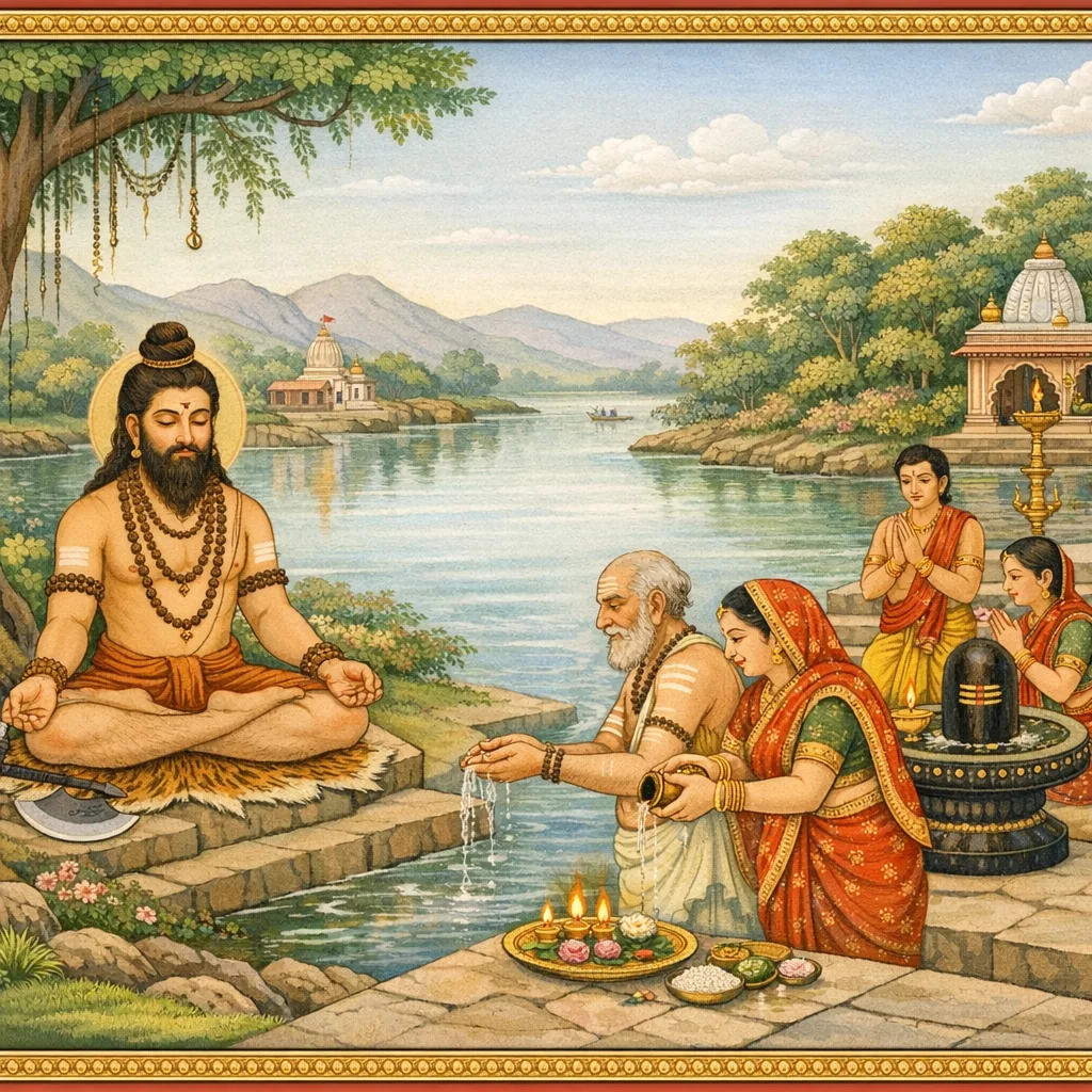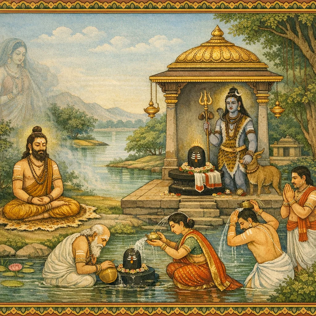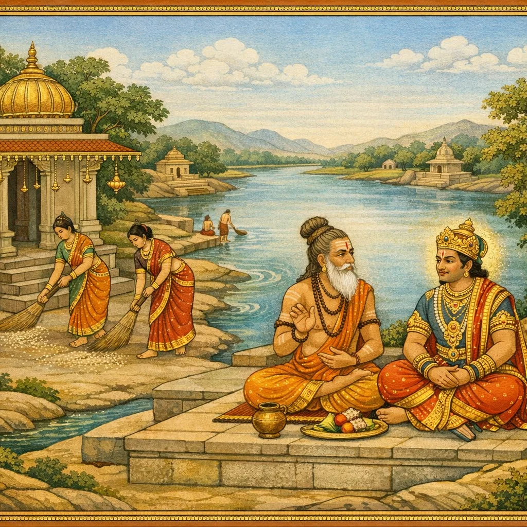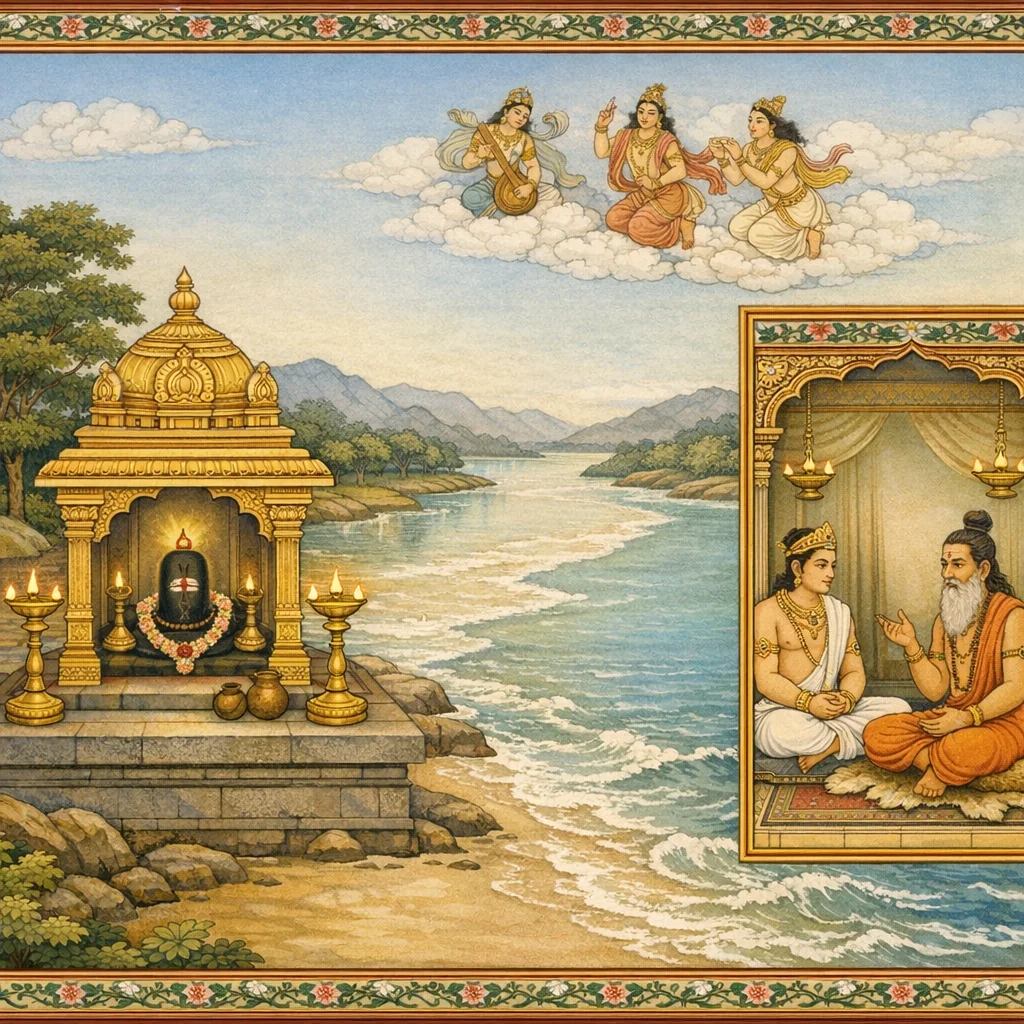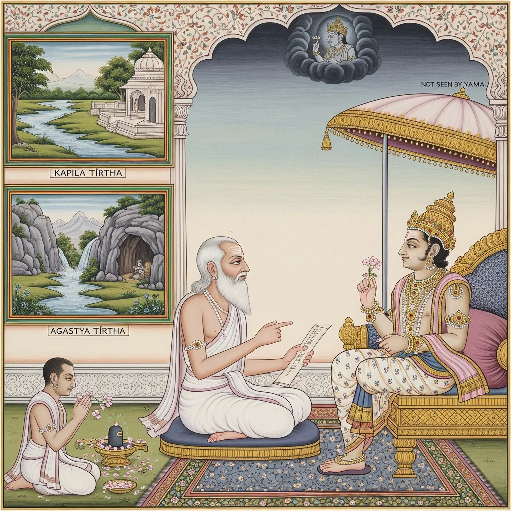 Kāverī–Narmadā Saṅgama Māhātmya (Kubera’s Observance and the Fruits of Tīrtha-Discipline)