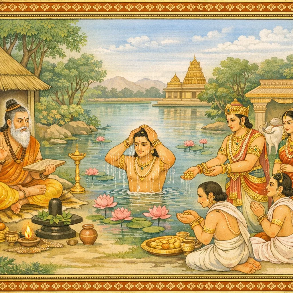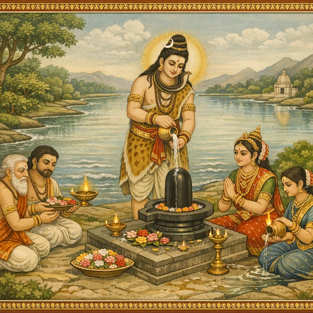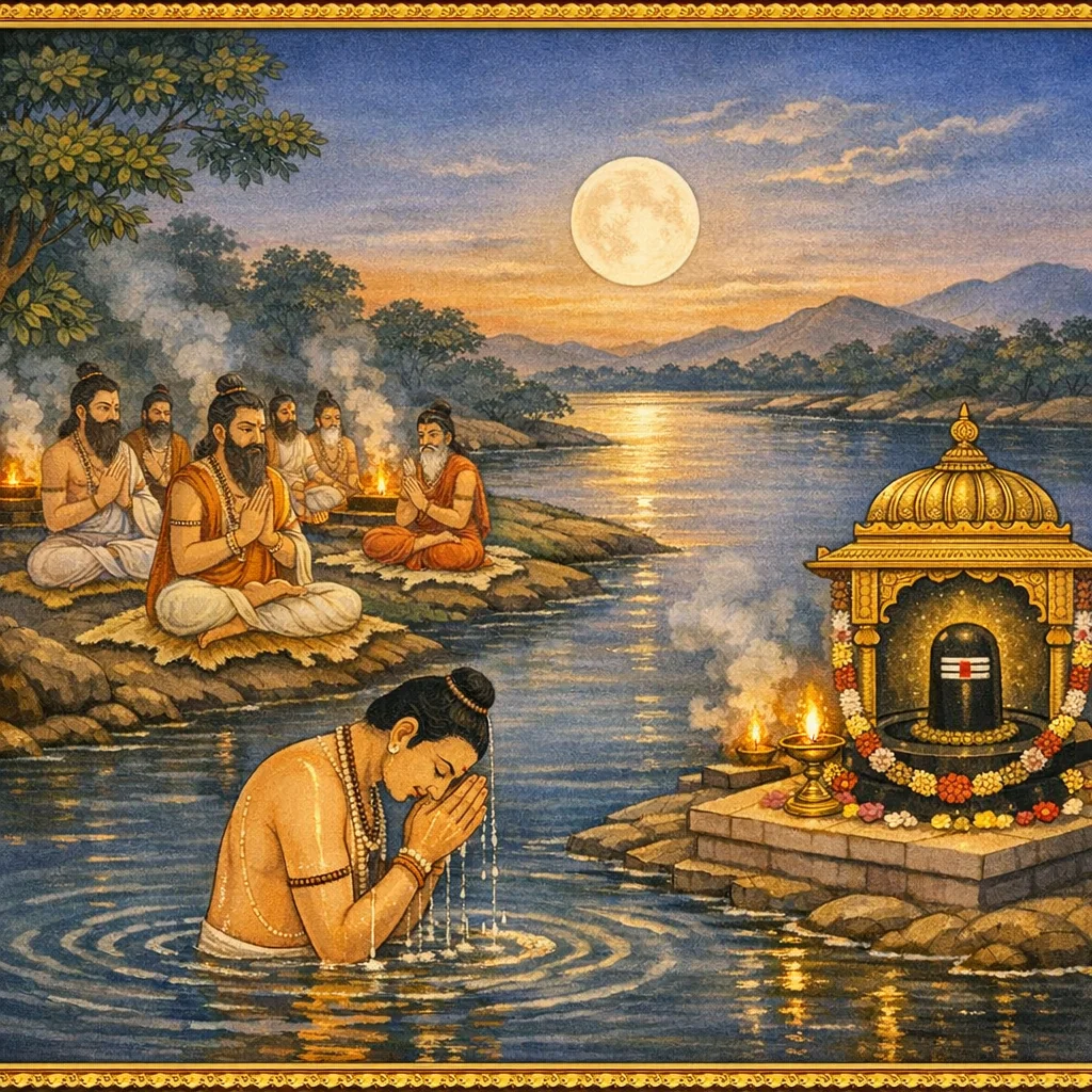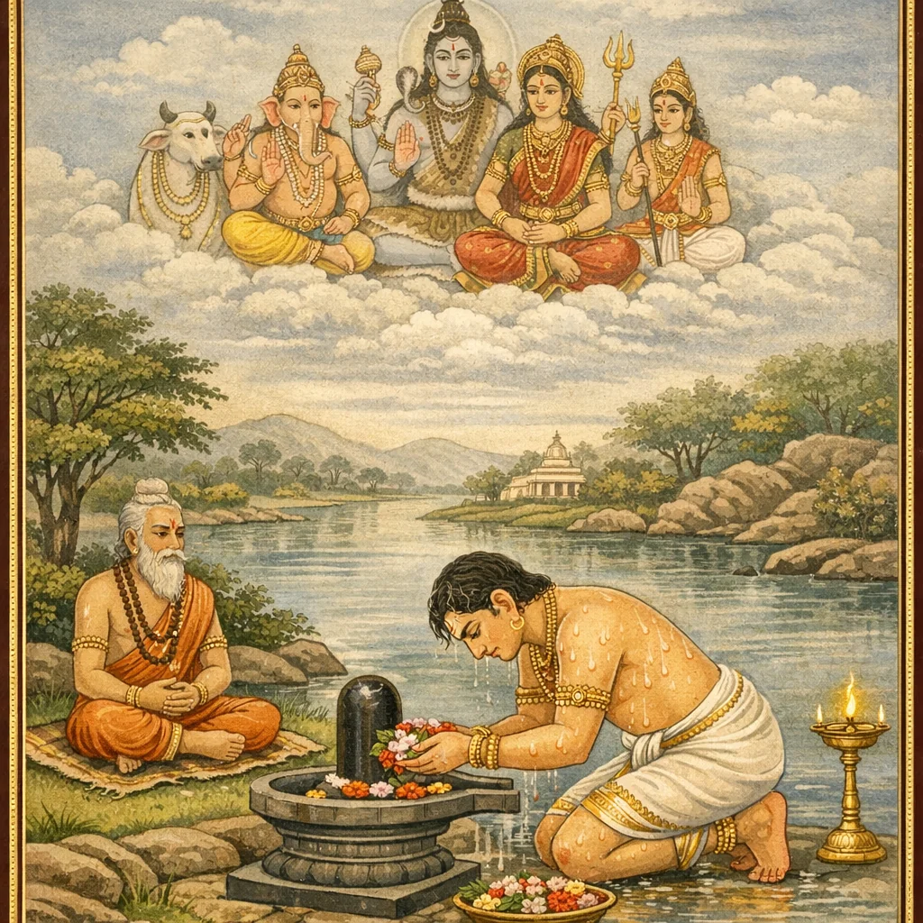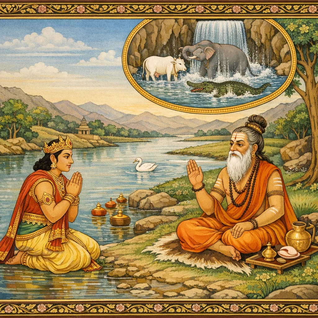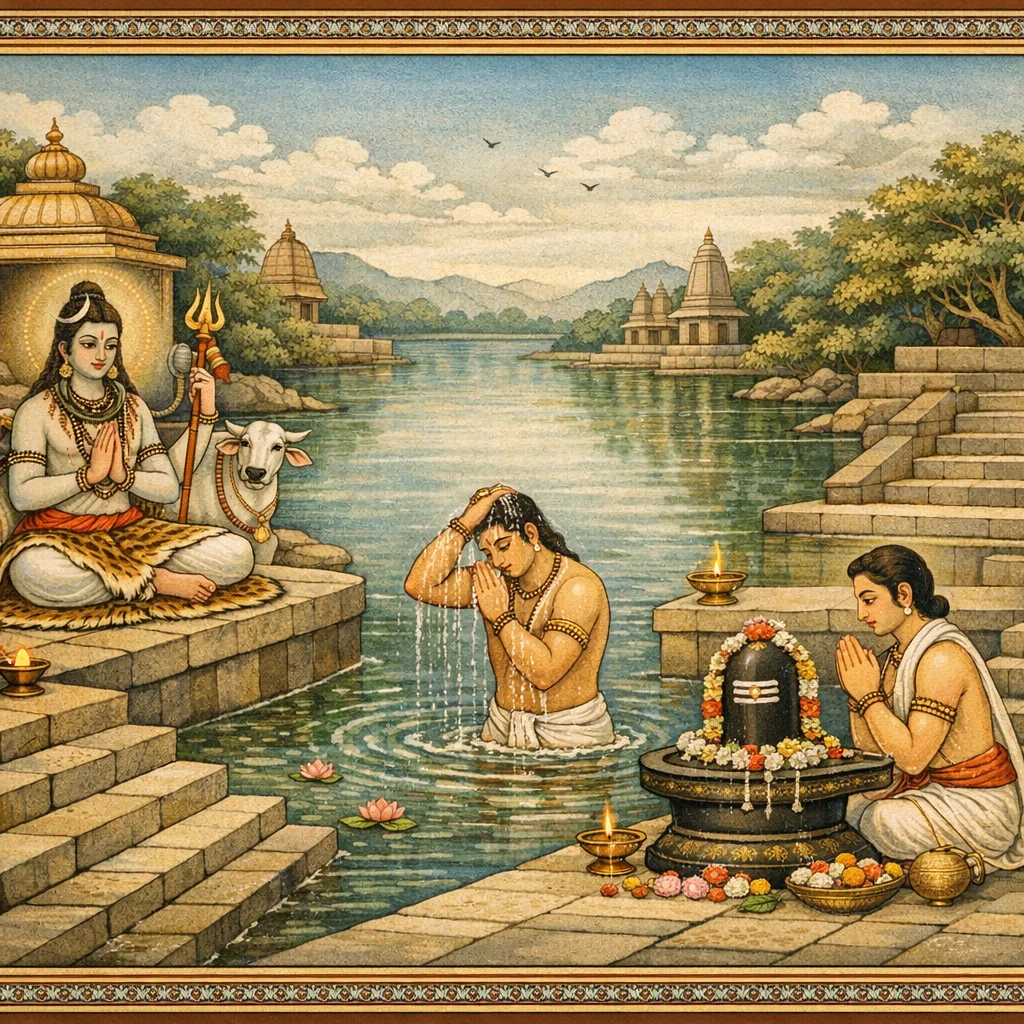 Kāverī–Narmadā Saṅgama Māhātmya (Kubera’s Observance and the Fruits of Tīrtha-Discipline)