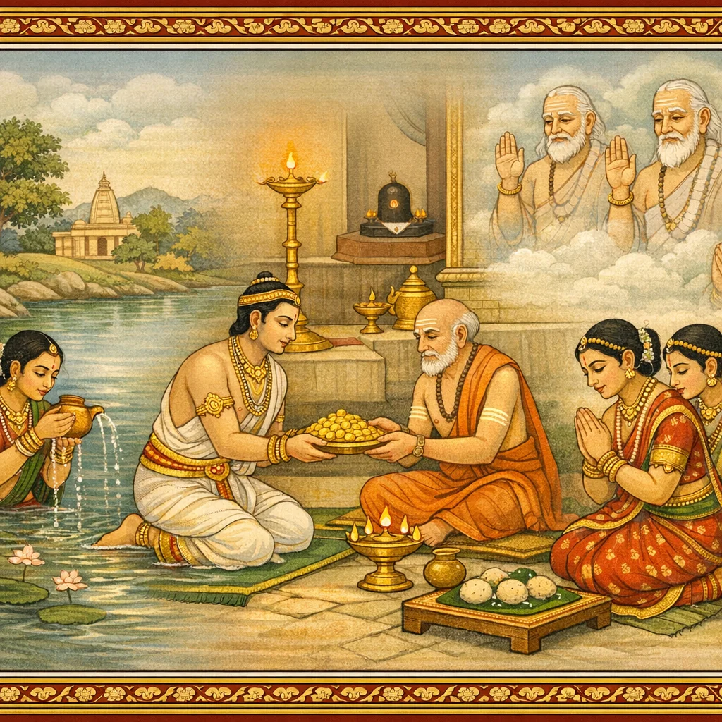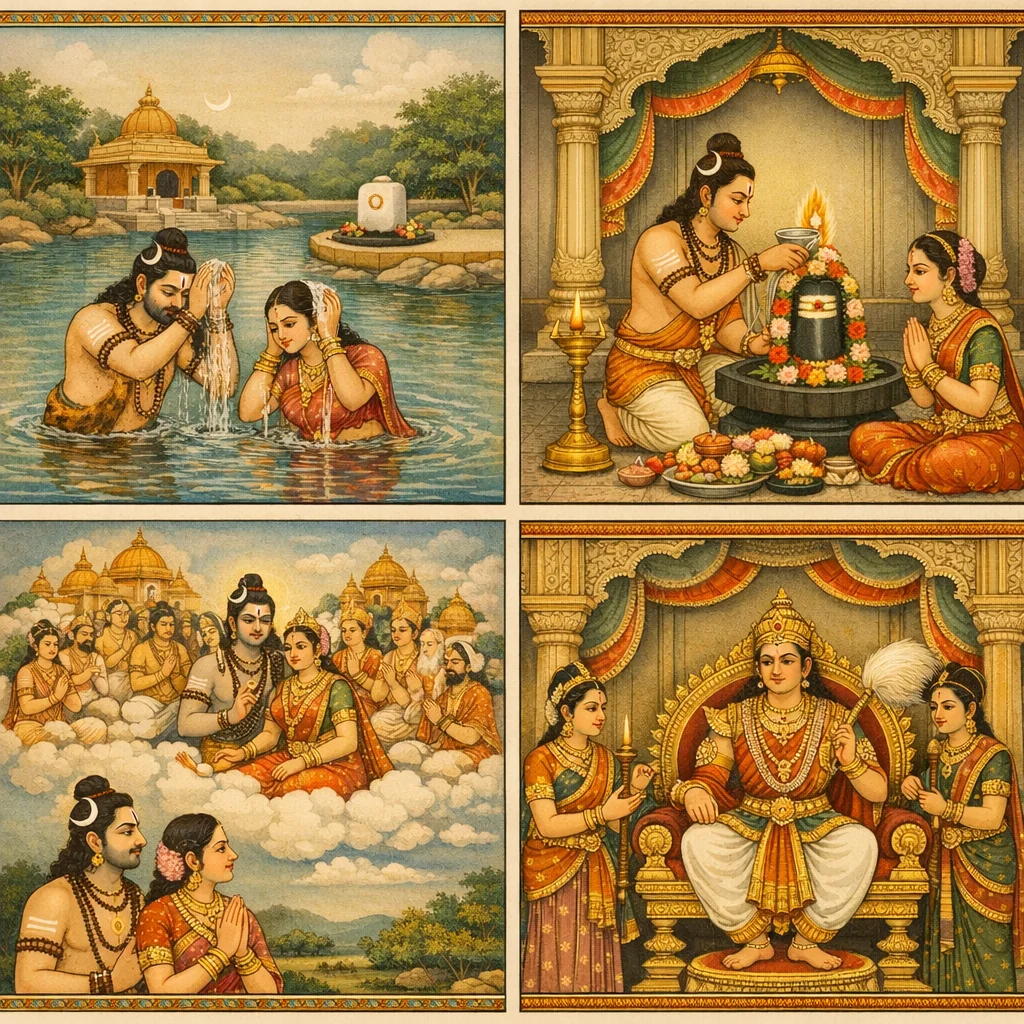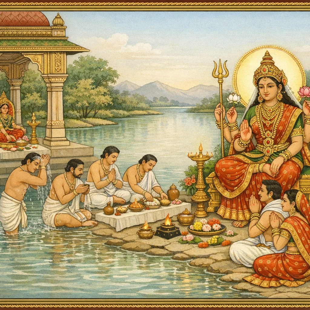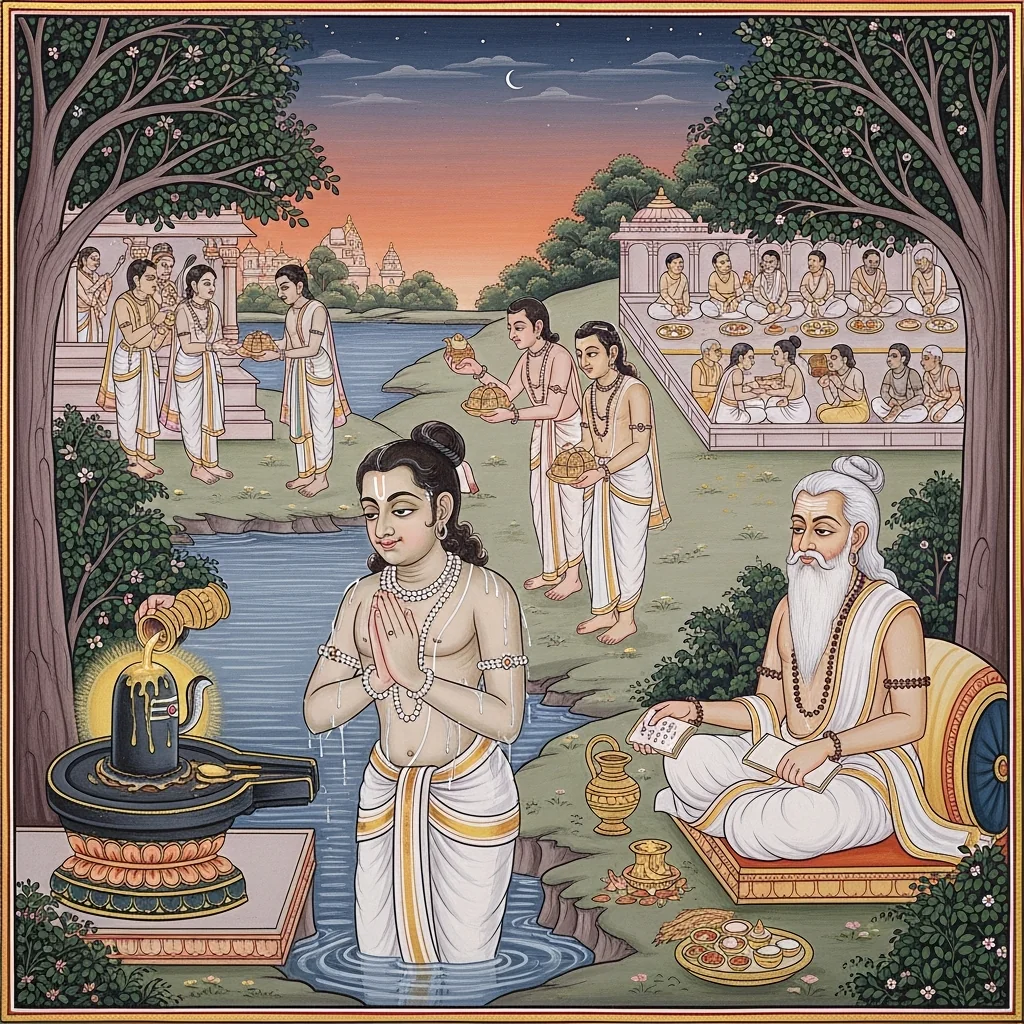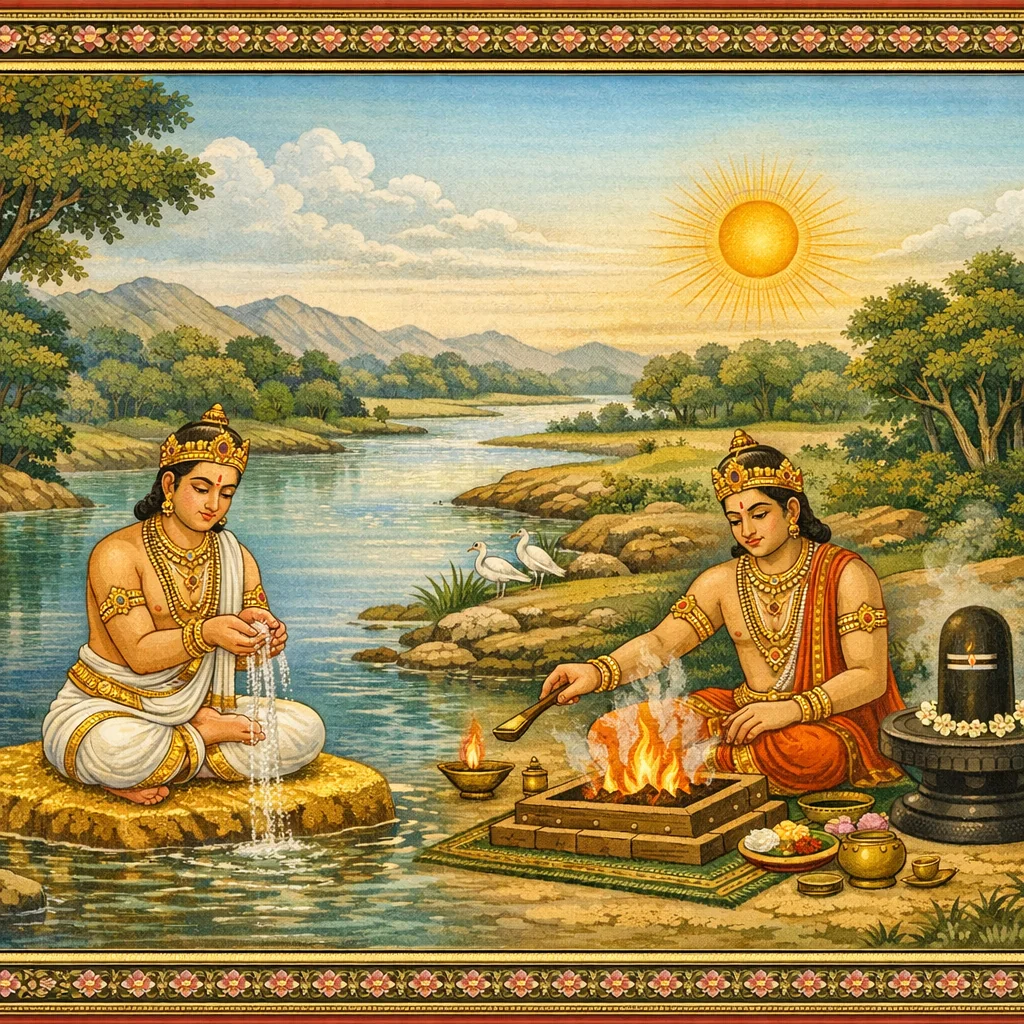 Kāverī–Narmadā Saṅgama Māhātmya (Kubera’s Observance and the Fruits of Tīrtha-Discipline)