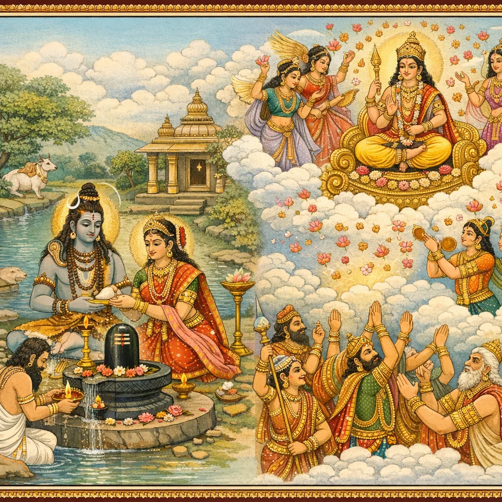 अन्धकस्य स्वपुरप्रवेशः स्वर्गागमनं च (Andhaka’s Return, Ascent to Heaven, and the Abduction of Śacī)