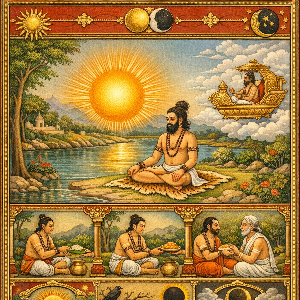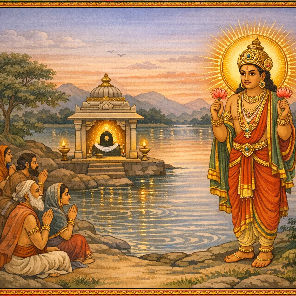 Āditya’s Manifestation at a Narmadā Tīrtha and the Stated Fruits of Worship (आदित्य-तत्त्व एवं तीर्थफल-प्रशंसा)