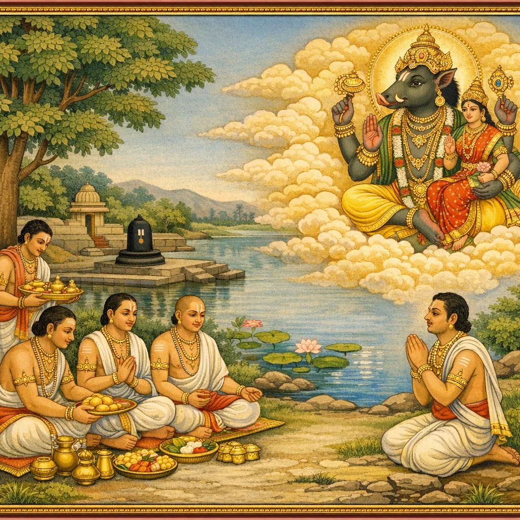 पञ्चवराहदर्शन-व्रत-फलश्रुति (Vision of the Five Varāhas: Vrata Procedure and Promised Fruits)