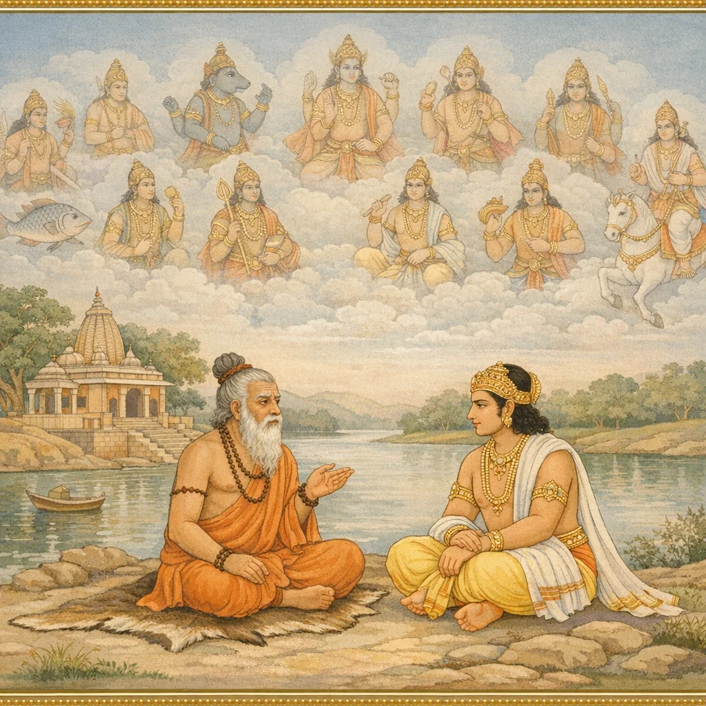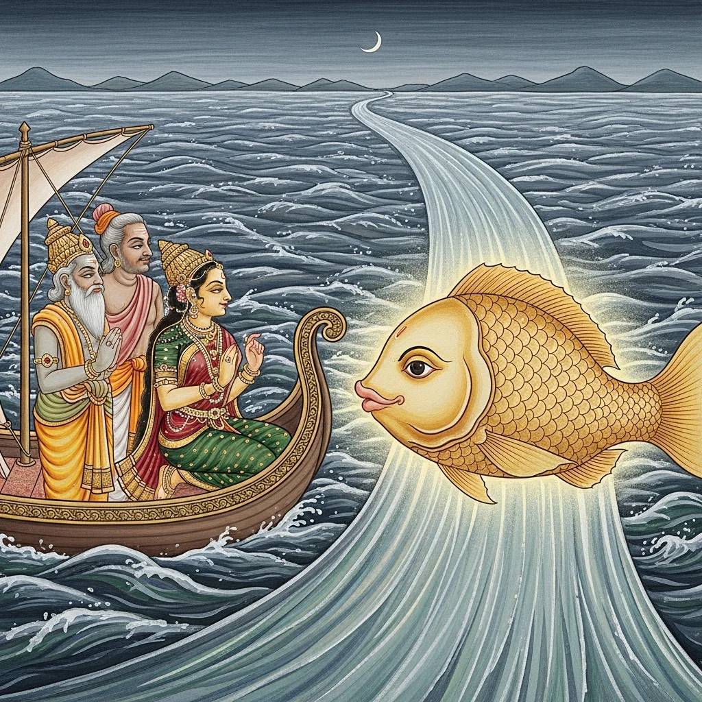 Mārkaṇḍeya’s Account of Yuga-Dissolution and the Matsya-Form Encounter (युगक्षय-वर्णनं मत्स्यरूप-समागमश्च)