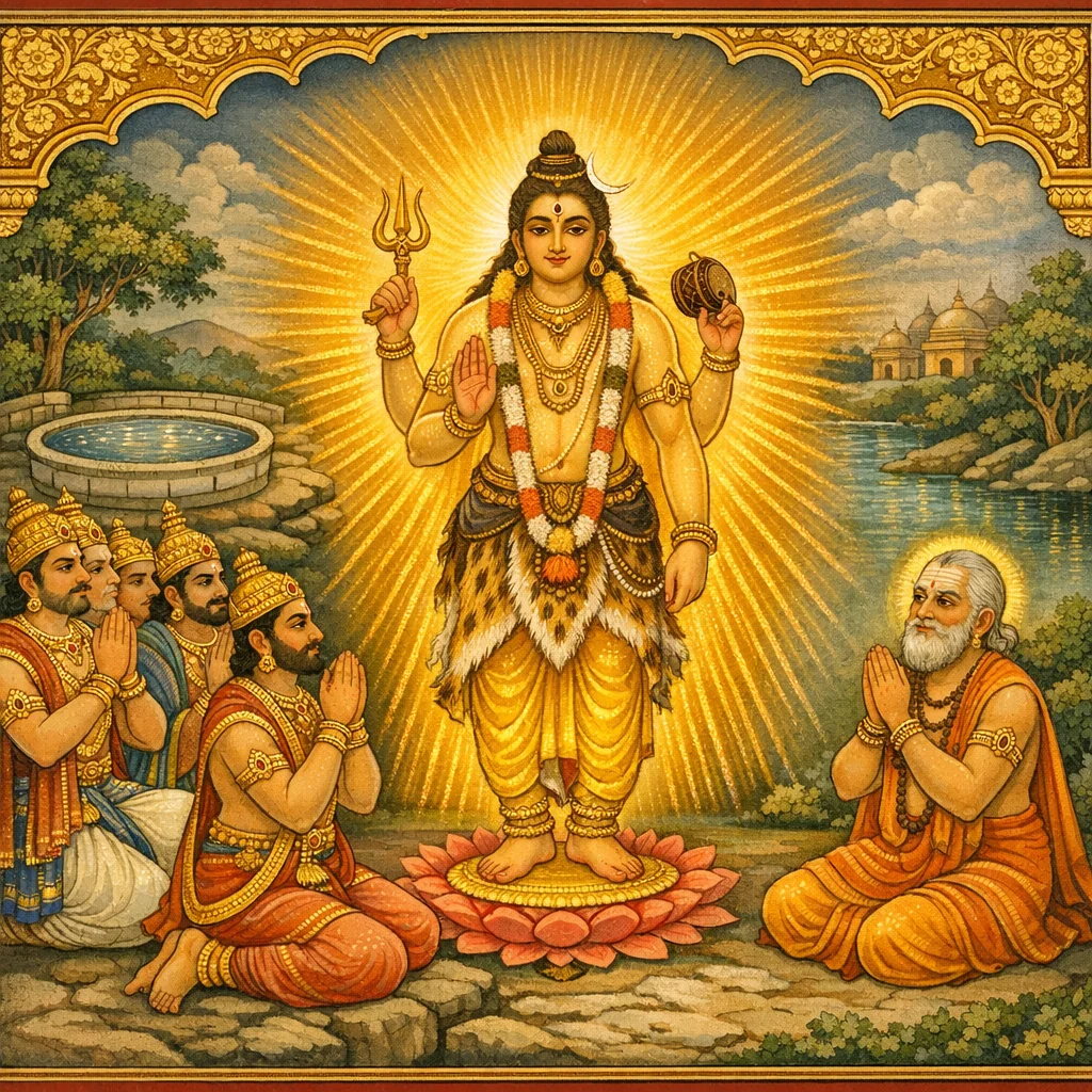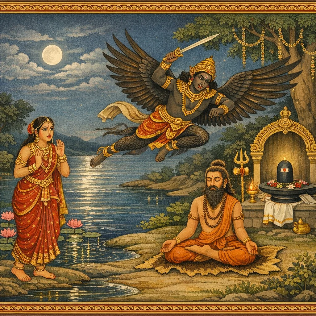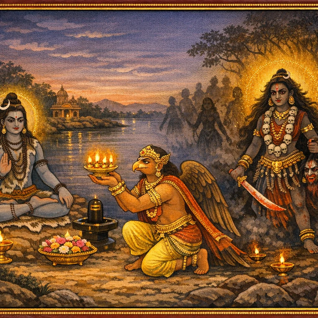 Garuḍa-tapas, Mahādeva-varadāna, and Cāmuṇḍā–Kanakeśvarī-stuti at a Tīrtha