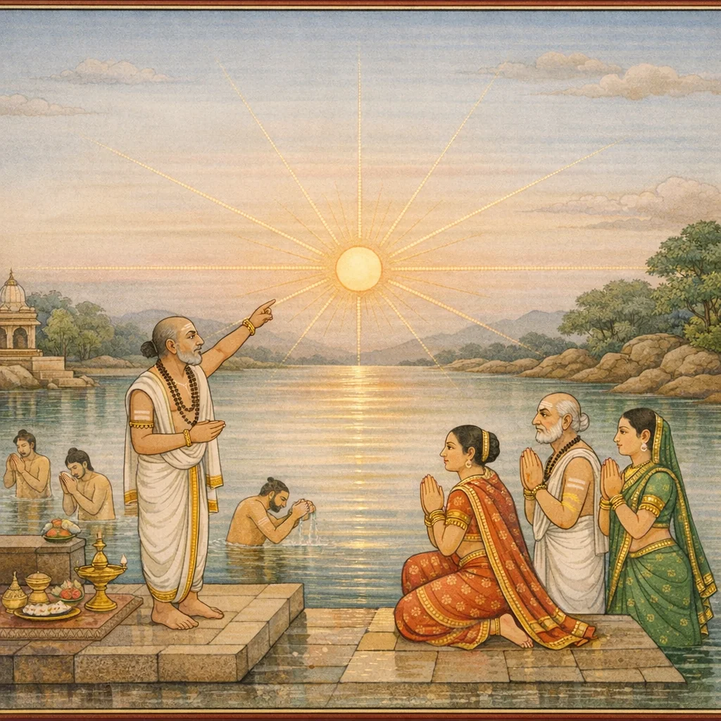 Sāvitrī-tīrtha Māhātmya and Sandhyā–Gāyatrī Discipline (सावित्रीतीर्थमाहात्म्यं तथा सन्ध्यागायत्रीविधानम्)