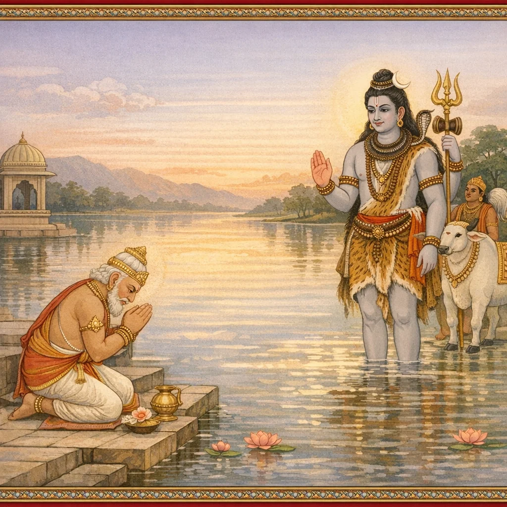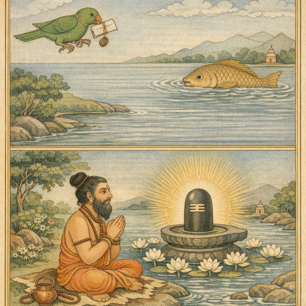 बकरूपेण महेश्वरदर्शनं तथा नर्मदामाहात्म्योपदेशः | Mahādeva as the Crane and the Instruction on Narmadā’s Sanctity