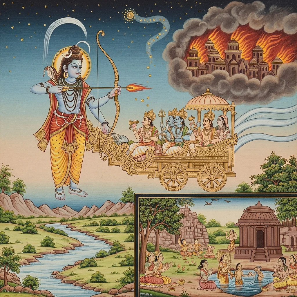 दग्धत्रिपुरप्रसङ्गः, बाणस्तोत्रम्, अमरकण्टक-ज्वालेश्वरमाहात्म्यम् (Burning of Tripura, Bāṇa’s Hymn, and the Māhātmya of Amarakāṇṭaka–Jvāleśvara)