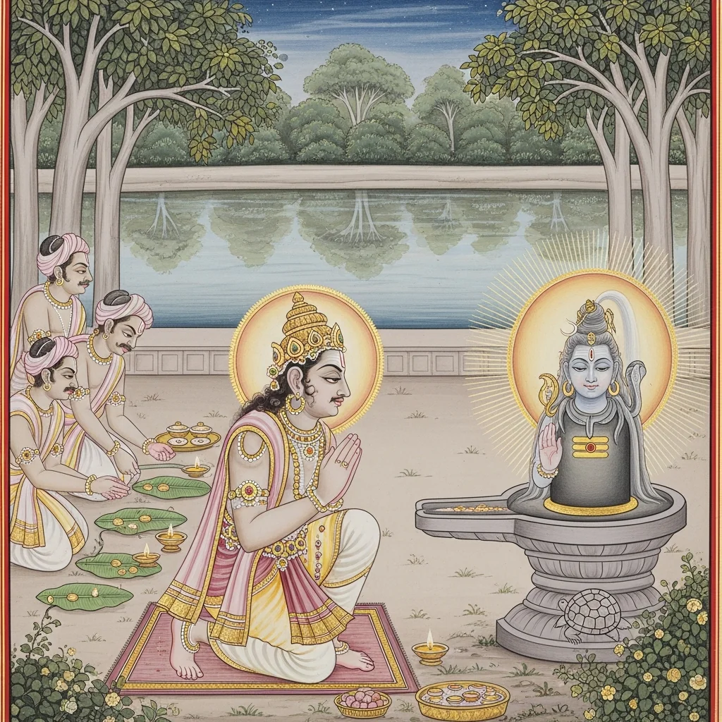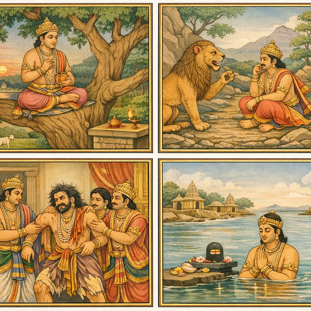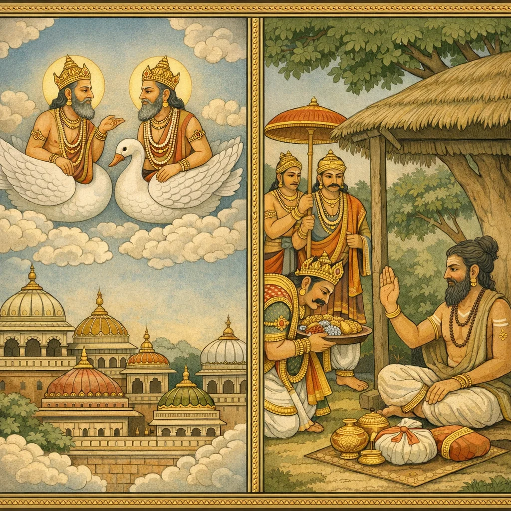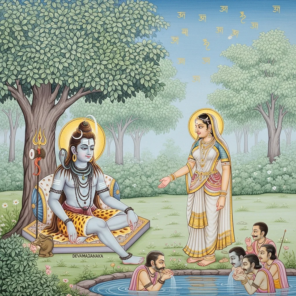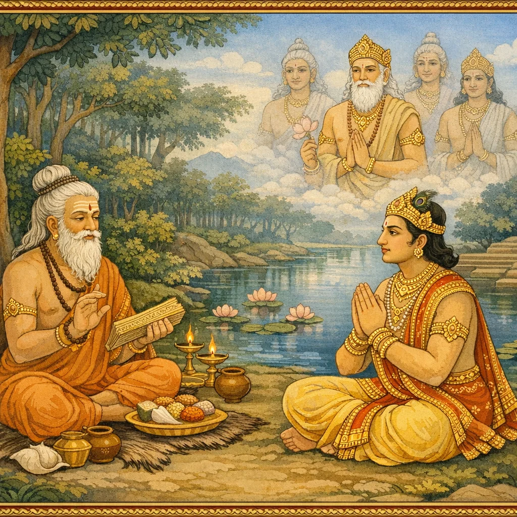 Dharmarāja’s Tapas in Dharmāraṇya and the Devas’ Attempted Distraction (धर्मारण्ये धर्मराजतपः–देवव्याकुलता–अप्सरःप्रेषणम्)