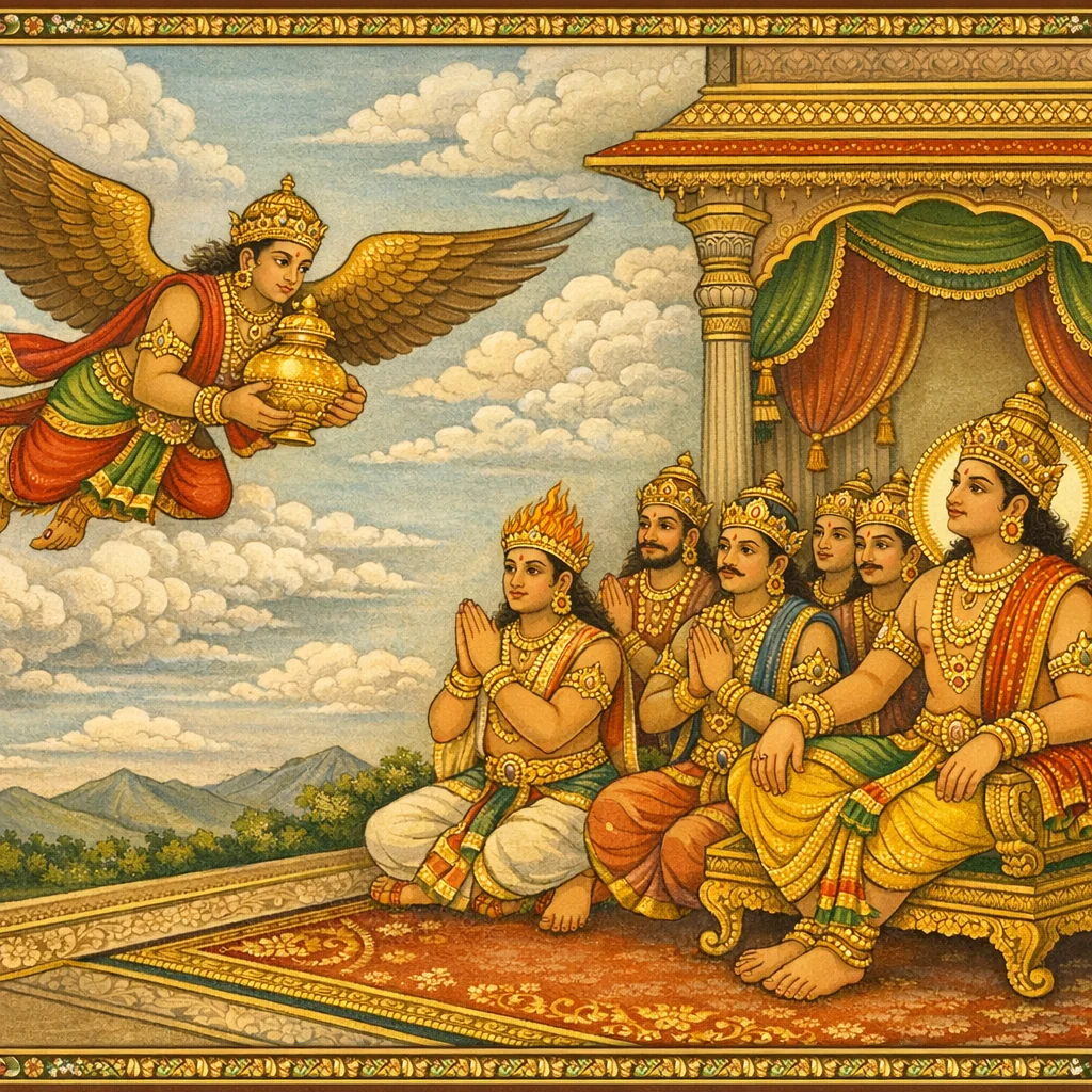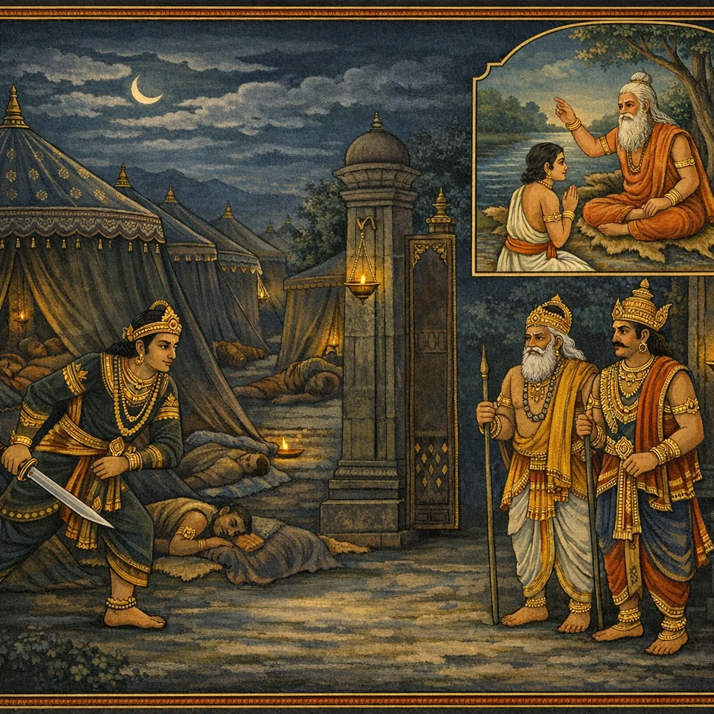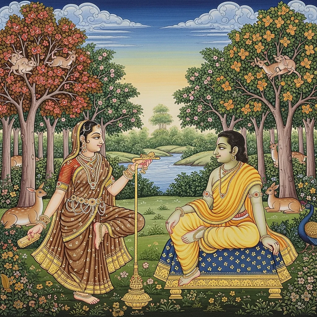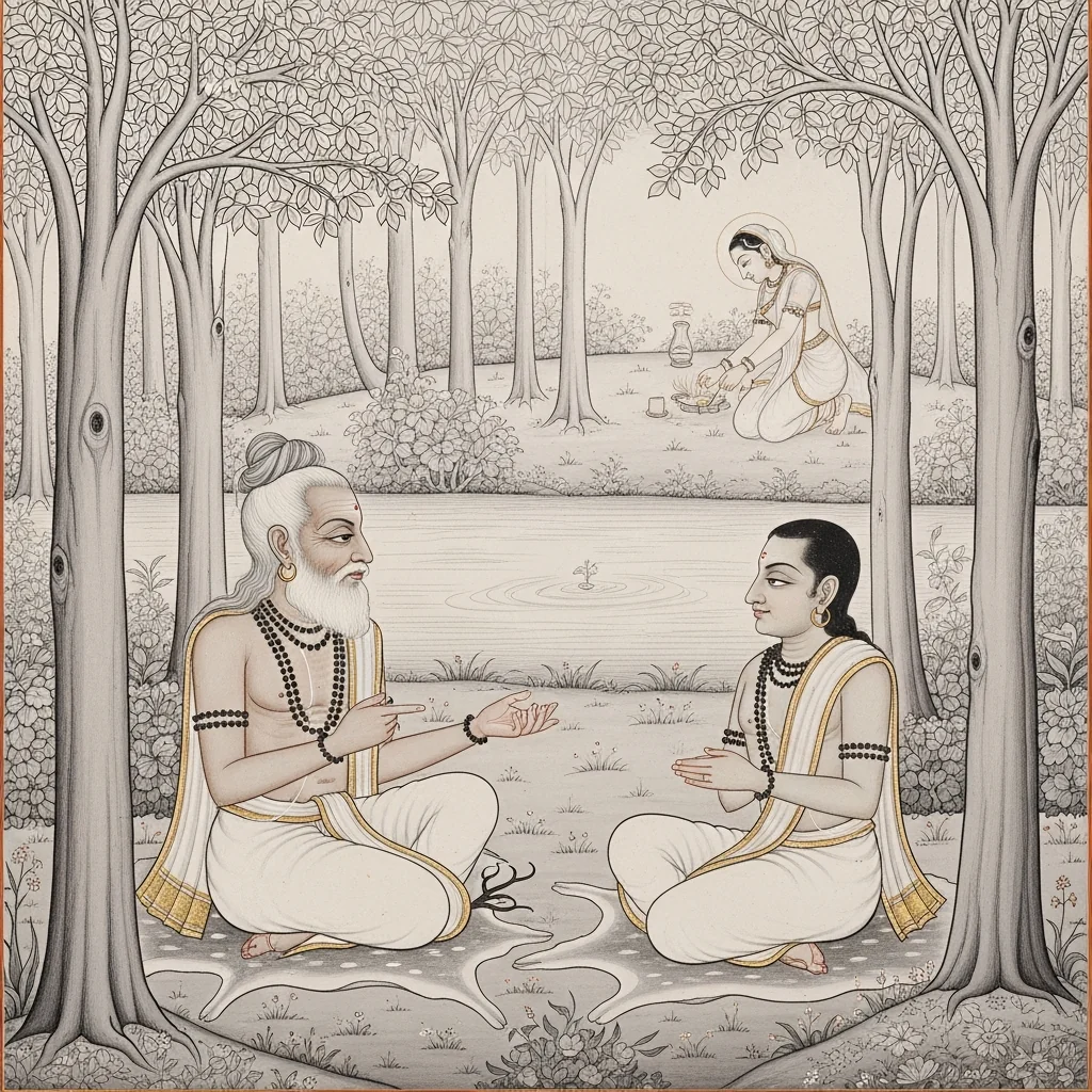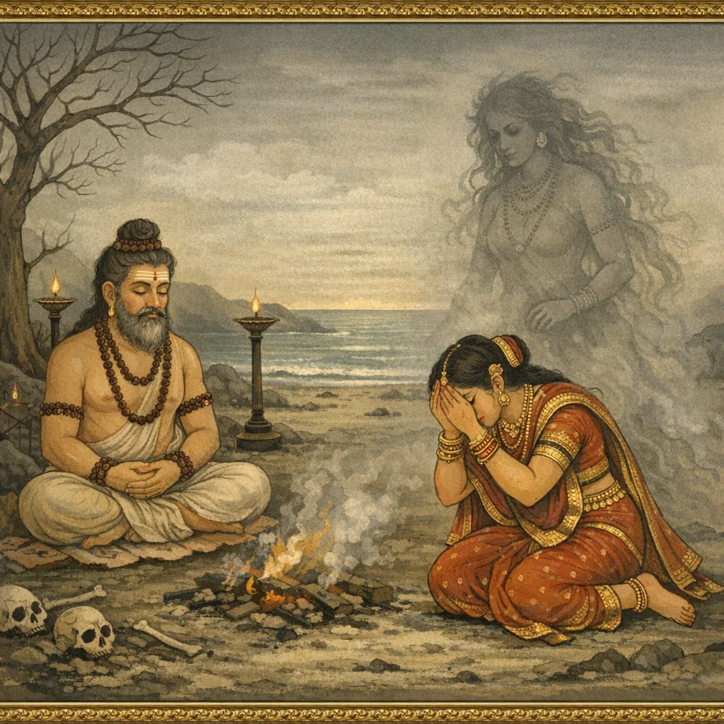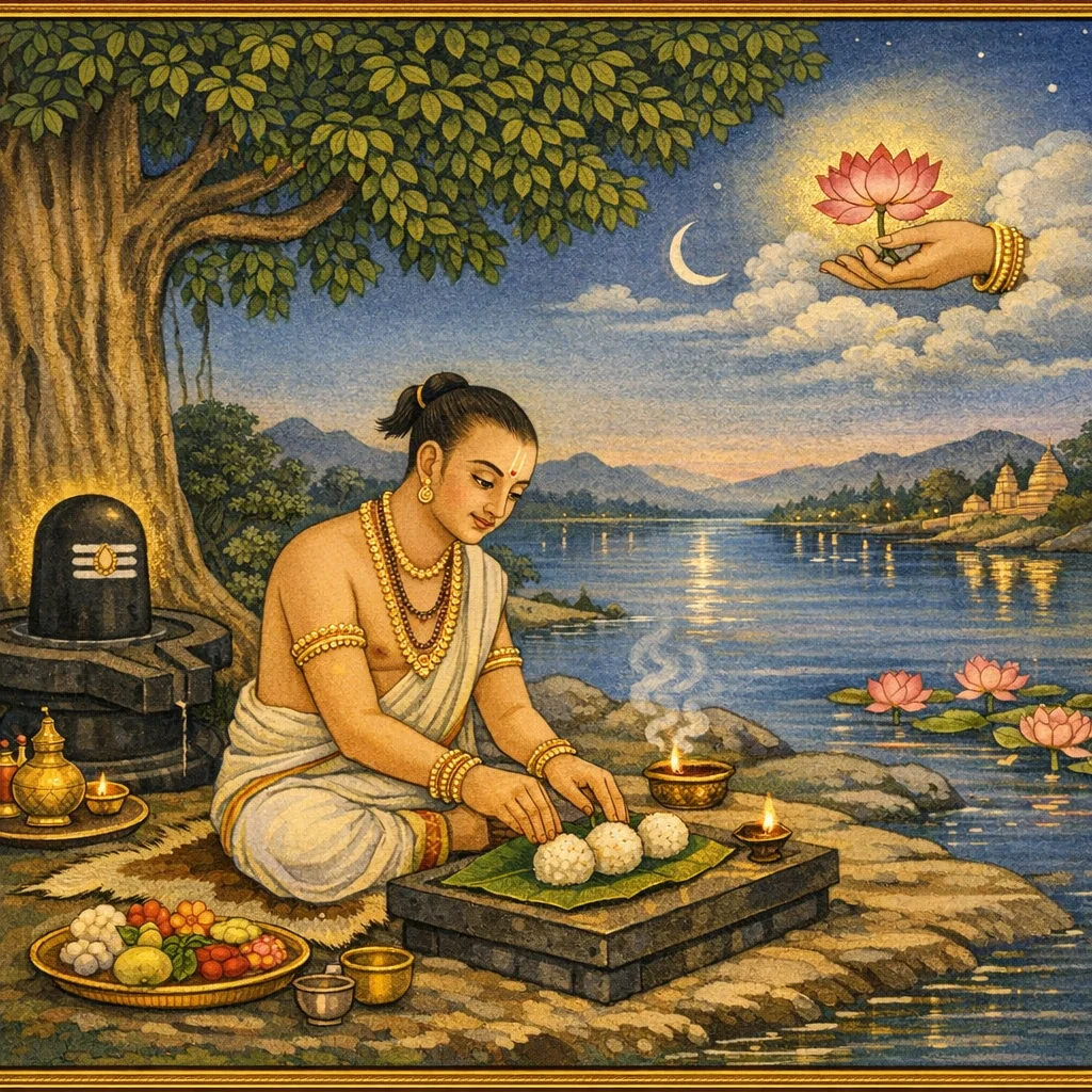Dharmarāja’s Tapas in Dharmāraṇya and the Devas’ Attempted Distraction (धर्मारण्ये धर्मराजतपः–देवव्याकुलता–अप्सरःप्रेषणम्)