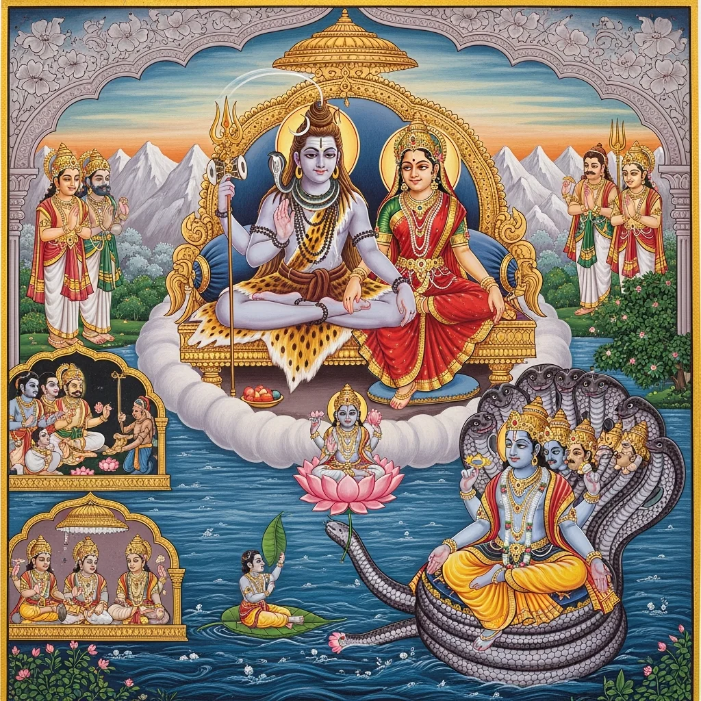 Dharmāraṇya-Prastāva: Deva-samāgama and Sṛṣṭi-Kathā (धर्मारण्यप्रस्तावः—देवसमागमः सृष्टिकथा च)