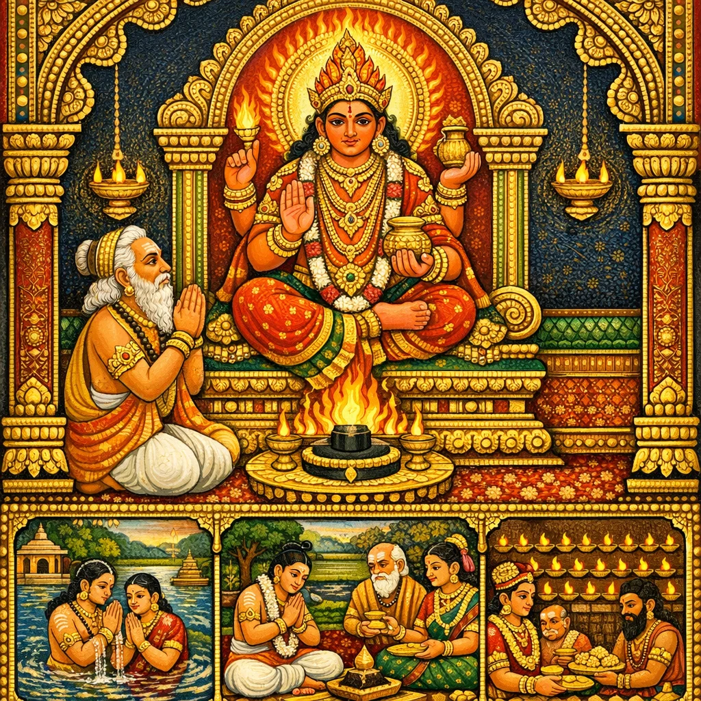 พึงระลึก/สาธยาย “ภฤคุตุงคะ”, “กุพชามระ”, “คังคोदภेदะ” และ “อฆานตกะ”; อีกทั้ง “วาราณสี” ตีรถะอันประเสริฐ และ “อวิมุกตะ” อันยอดยิ่ง