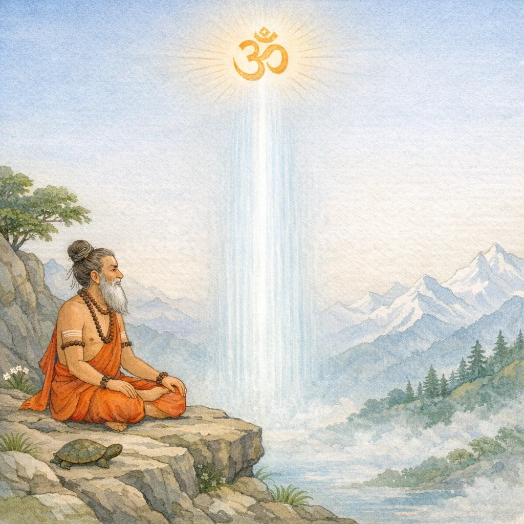 พระเวททั้งปวงประกาศบุรุษสูงสุดว่าเป็นความปีติอันนิรันดร์ อมฤตะ เป็นรูปแห่งสัจจะ และบริสุทธิ์ยิ่ง ครั้นตระหนักว่า “นั่นเท่านั้นคือสิ่งนี้ทั้งหมด” ผู้หยั่งรู้ความหมายแห่งเวทจึงเพ่งภาวนาพระผู้เป็นเจ้าโดยปรณวะ (โอม)