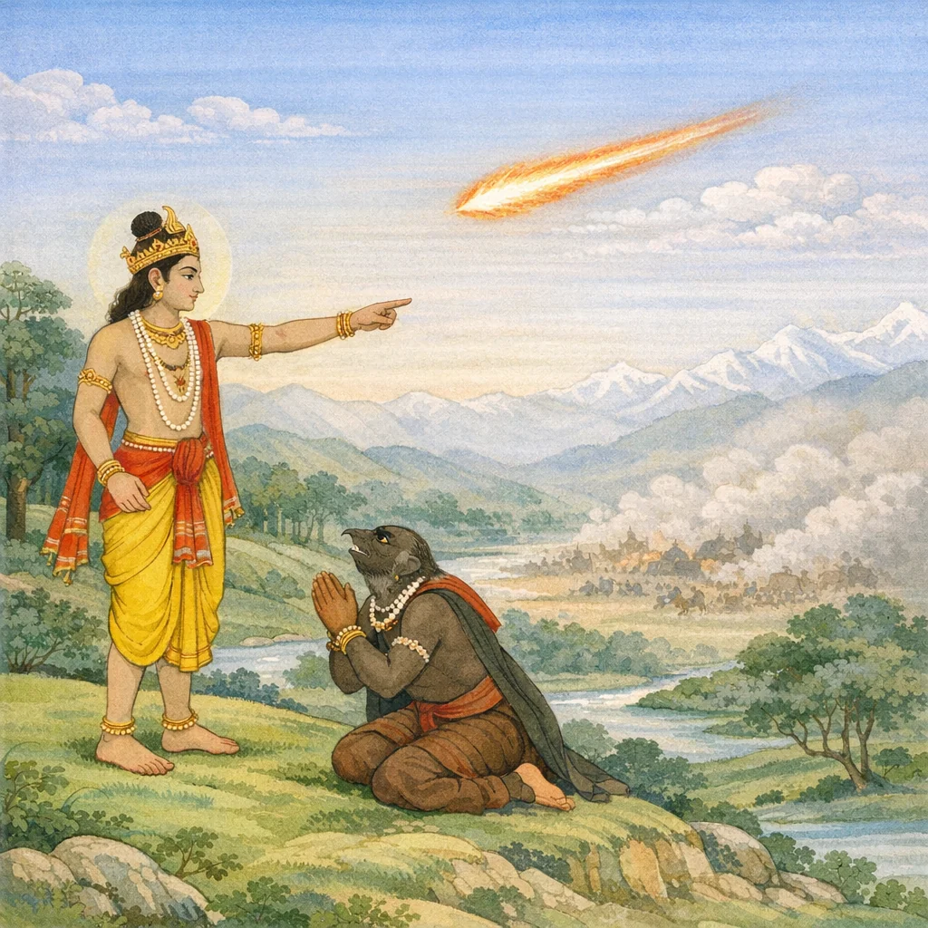 ผู้ที่กำลังหลบหนีจากสงครามเพราะไม่อาจทนต่อเทวานุภาพอันรุ่งโรจน์ได้ ได้เข้าโจมตีภูเขาโครัญจะด้วยพละกำลังมหาศาลนับสิบล้าน