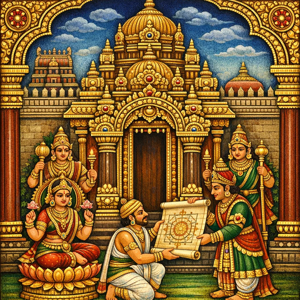 It frames temple-building as applied dharma: correct proportion, orientation, deity-placement, and auspicious installations convert craftsmanship into ritual order, making built space a support for pūjā, pradakṣiṇā, and disciplined devotion aligned with mokṣa.