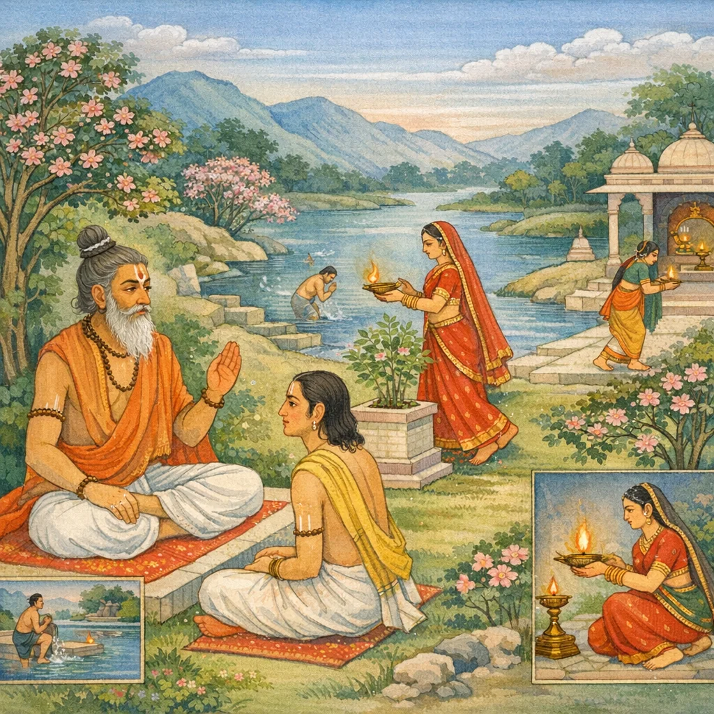 تمام گناہوں سے پاک ہو کر وہ اعلیٰ ترین نروان کو پہنچے۔ جب سلطنت سے محروم بادشاہ نوَمی کے دن ضبطِ نفس اور پاکیزگی کے ساتھ ورت رکھے…