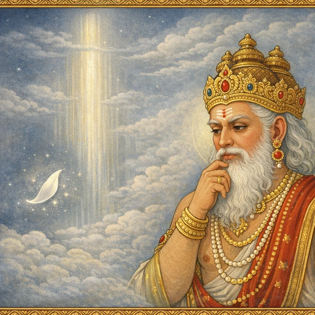 Tejaḥstambha-viṣaye Brahmaṇaḥ Vinayaḥ (Humility of Brahmā before the Pillar of Radiance)