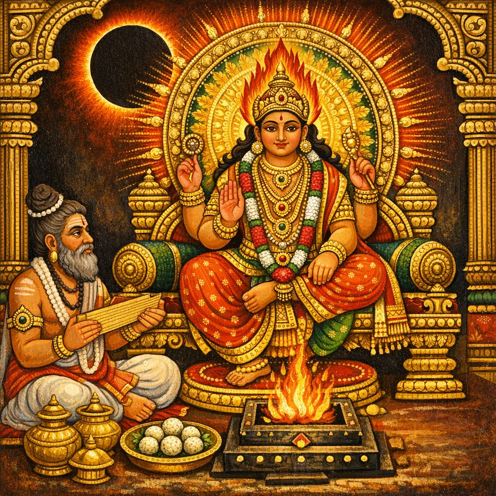 当辛希迦之子罗睺在半月交界(parvan-sandhi)吞蚀太阳之时,此时应知名为“象影”;这是不坏而极具功德之机,适宜行施食祖灵的 śrāddha 及布施等善行。
