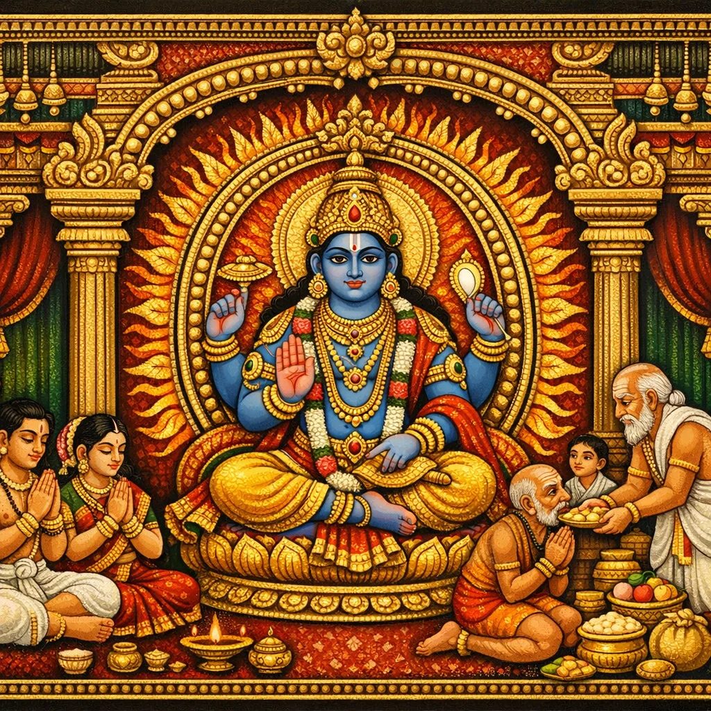 本章主要作为过渡标记:在誓戒篇(Vrata-khaṇḍa)中,它以结语(colophon)收束此前关于依月日(tithi)而行之誓戒(tithi-vratāni)的教导。结语宣告一套历法修持体系的完成:以阴历月日为仪轨坐标来奉行达摩。至此终结月日循环,经典遂引导行者由月相计日转入太阳与星期之计日,同时延续《阿耆尼往世书》的方法——将可实践的仪式技术呈为道路,兼护世间安稳之乐(bhukti)与解脱之旨(mukti)。
