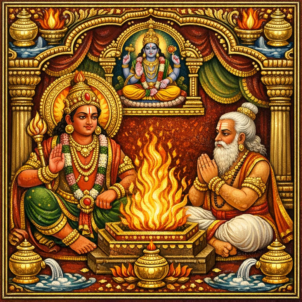 火神阿耆尼阐明成就的阶梯:祭祀(yajña)引至天界与宇宙诸境;苦行(tapas)得梵天(Brahmā)之位;具离贪(vairāgya)的出离导向自然融没(prakṛti-laya);而智慧(jñāna)则至独存解脱(kaivalya)。他定义 jñāna 为辨别有知与无知(有情与无情),并指出至上自性为万有依止,赞为毗湿奴(Viṣṇu)与祭主(Yajñeśvara):为趋向 pravṛtti 的仪式行者所礼敬,为趋向 nivṛtti 的智瑜伽行者所证悟。又分两种知:依阿伽摩/吠陀之“声梵”(śabda-brahman),与由辨慧(viveka)证得之“胜梵”(para-brahman);并以词源释“薄伽梵”(Bhagavān),列六德 bhaga(aiśvarya, vīrya, yaśas, śrī, jñāna, vairāgya)。系缚源于无明(avidyā)——以自性叠加于非我——并以水、火、器之譬喻分离 ātman 与 prakṛti 之不法(adharma)。修持法门:令心离境,忆念哈利(Hari)即梵,建立瑜伽为心与梵的合一,以 yama-niyama、āsana、prāṇāyāma、pratyāhāra、samādhi 令之稳固。因无相绝对初学难入,观修先从有相而终归无差别;所见差别皆归于无明。