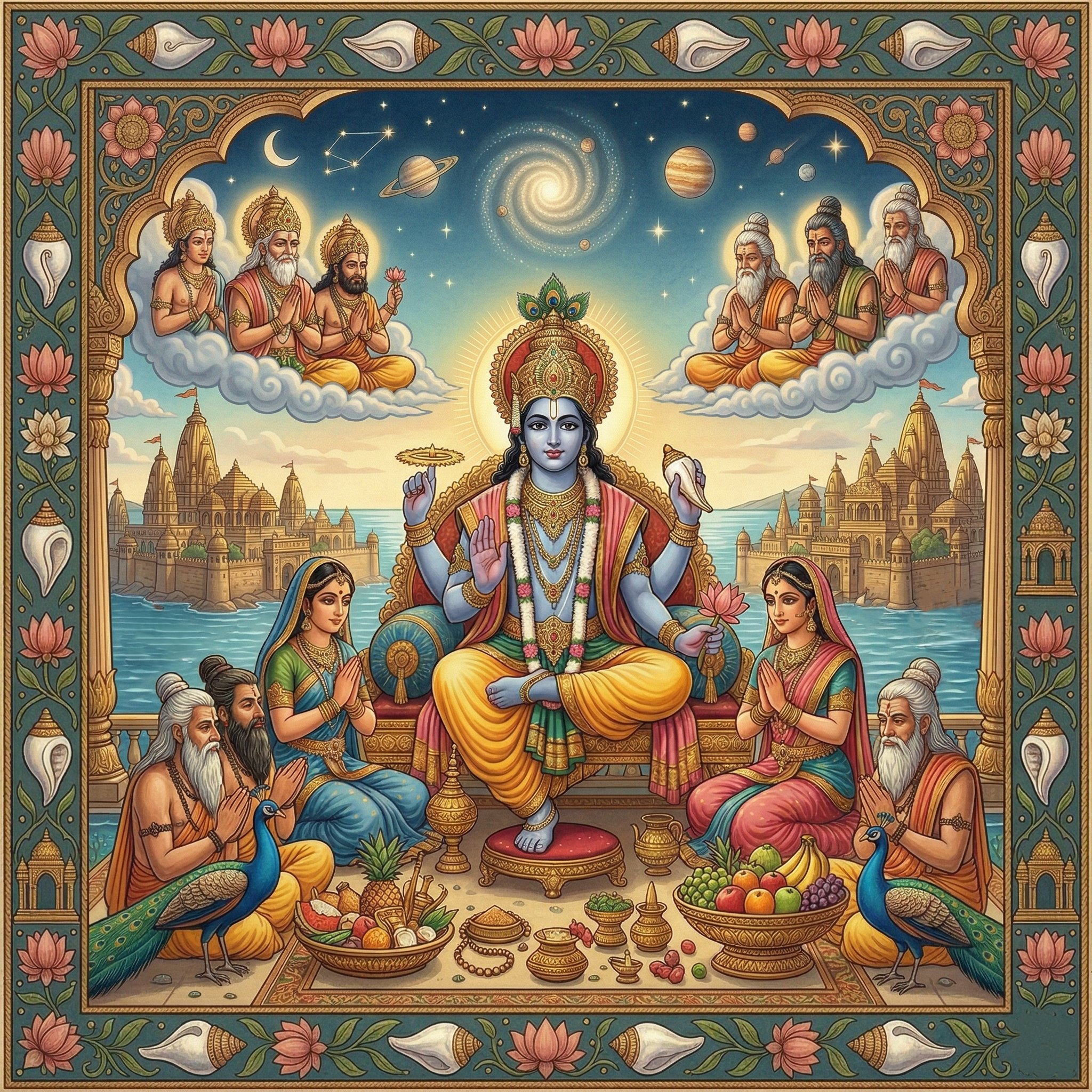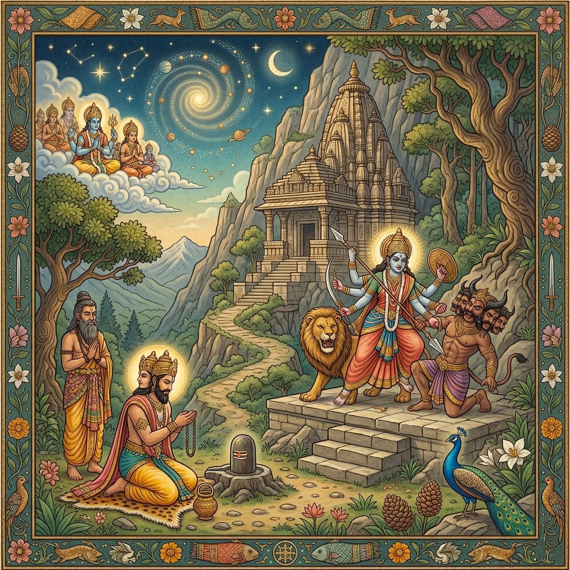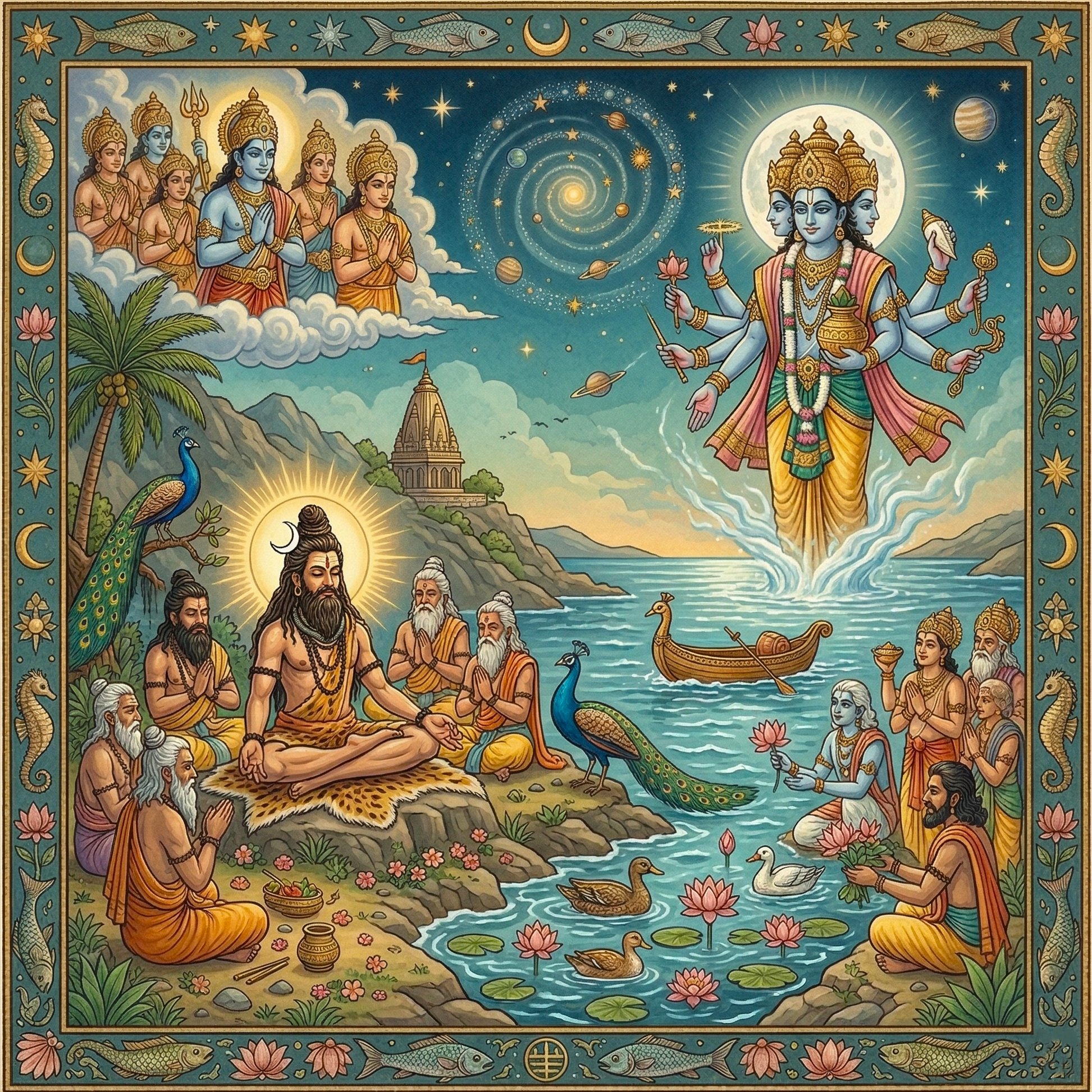 Prabhāsa-khaṇḍa 在《Skanda Purāṇa》宏大汇编中,具有“圣地地理”(tīrtha-māhātmya)与神学图谱的性质,传统上与八万一千颂的规模相联系。它以朝圣路线与圣境分布为骨架,融汇河流与神庙的起源传说、圣地(kṣetra)的由来,以及将地方空间纳入泛印度宇宙论的教义省思。 本篇常以问答与叙事对话展开:从某一地名的缘起、某一河岸或海滨的圣迹,逐步引出关于创造(sṛṣṭi)、毁灭与回归(pralaya)、以及诸神层级与神圣秩序的阐释。由此,地方性的朝圣实践被提升为通向普遍真理的入口。 其显著特色在于把“仪式化的聆听”(śravaṇa)与功德逻辑(puṇya)及果报宣说(phalāśruti)紧密结合。经由恭敬聆听与礼敬巡礼,圣地被呈现为形而上原则的具象化,而非仅是可测量的地理坐标。 书中对海岸、河流、丘陵与聚落的解读,往往通过诸天(deva)与圣贤(ṛṣi)的行迹来完成,从而含蓄地编码伦理规范、奉爱取向与诸派和合的精神。整体而言,Prabhāsa-khaṇḍa 在“地方圣境”与“普遍神学”之间架起桥梁,使行走于大地的朝圣,也成为趋向至上神圣的内在旅程。